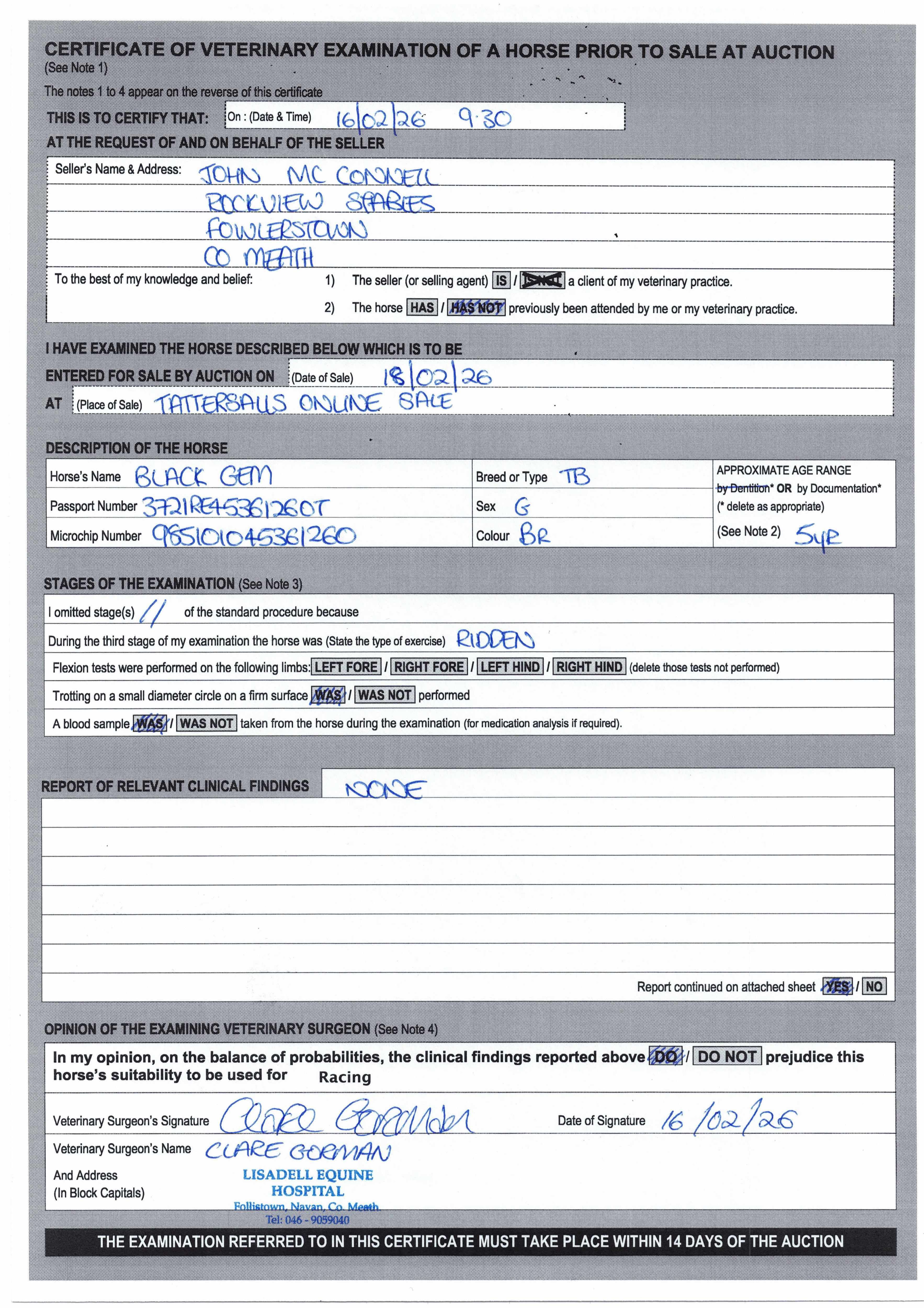 For time sensitive requests please call Tattersalls on +44(0)1638665931