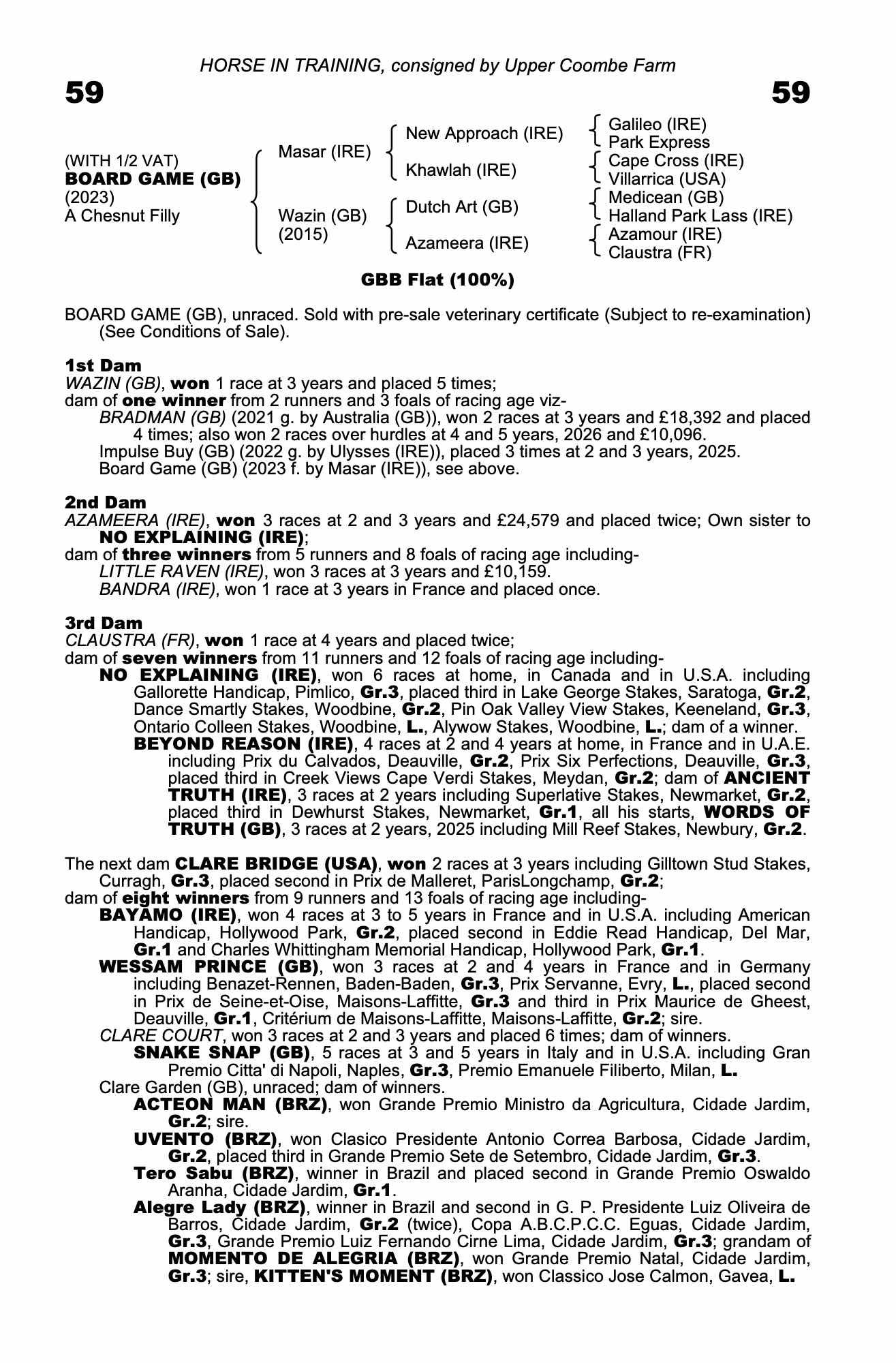 Vendor's Notes: A 3yo Filly by Masar is out of a winning daughter of Dutch Art. She is half sister to Bradman, two time winner on the flat and two time winner over hurdles. She is a strong looking filly, who has been given time to strengthen and mature. Unfortunately circumstances have changed for her owners and she is now being offered for sale.