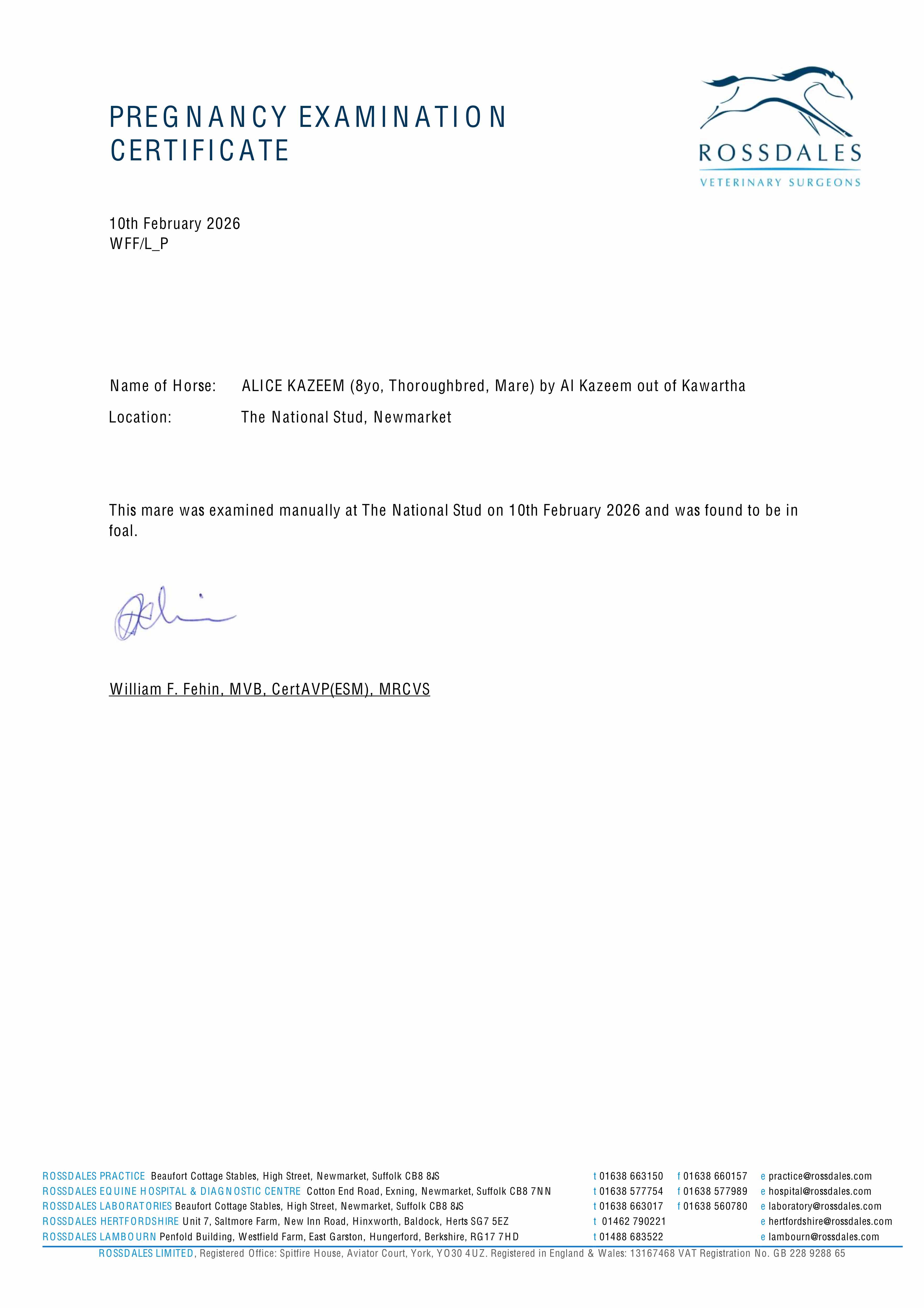 Electronic covering cert at Weatherbys