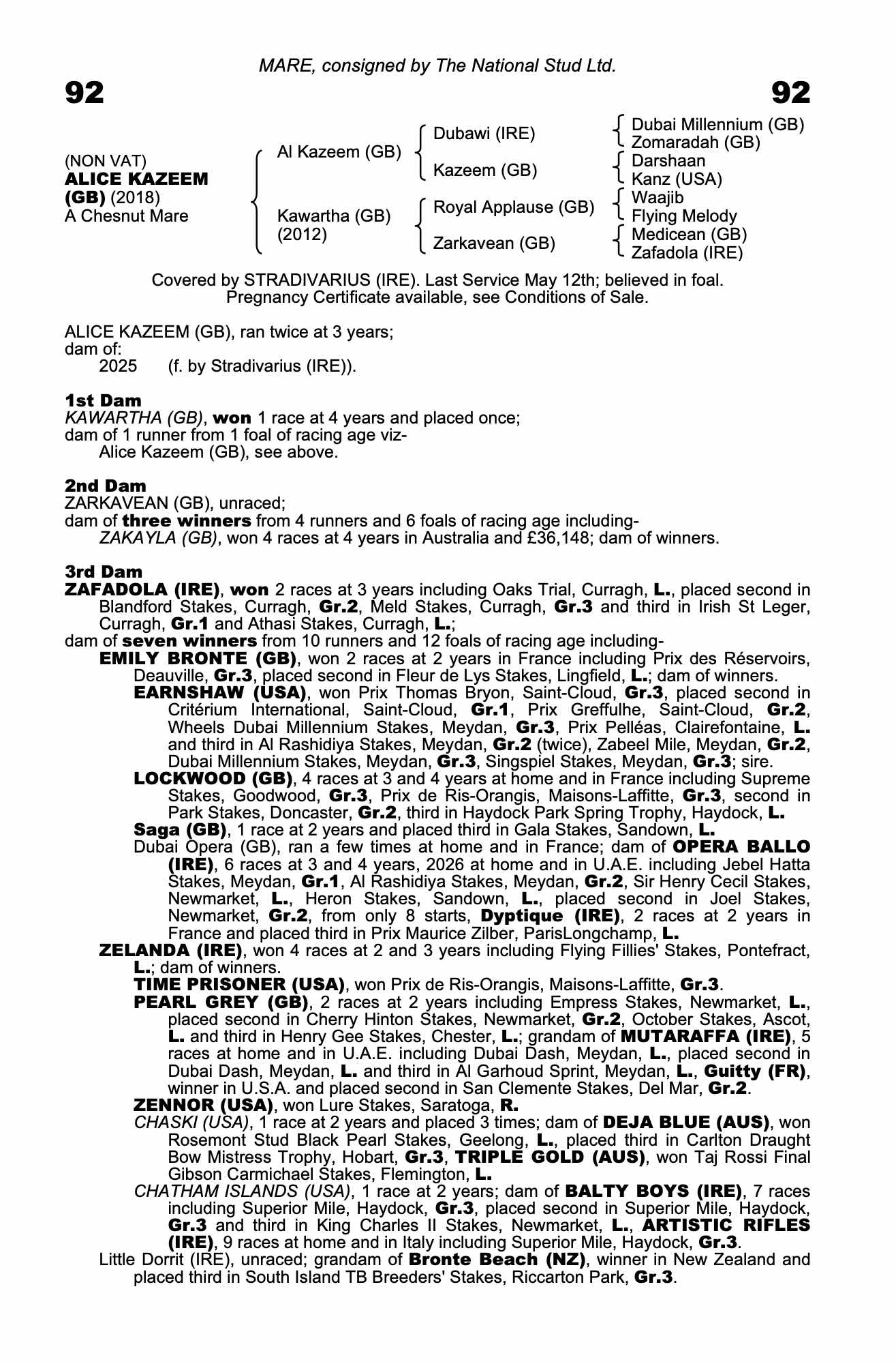 Online Sale - 18th February 2026 lot 80 F. by Stradivarius (IRE) 2025, The National Stud Ltd.=>Lot Not Sold 4,200 gns