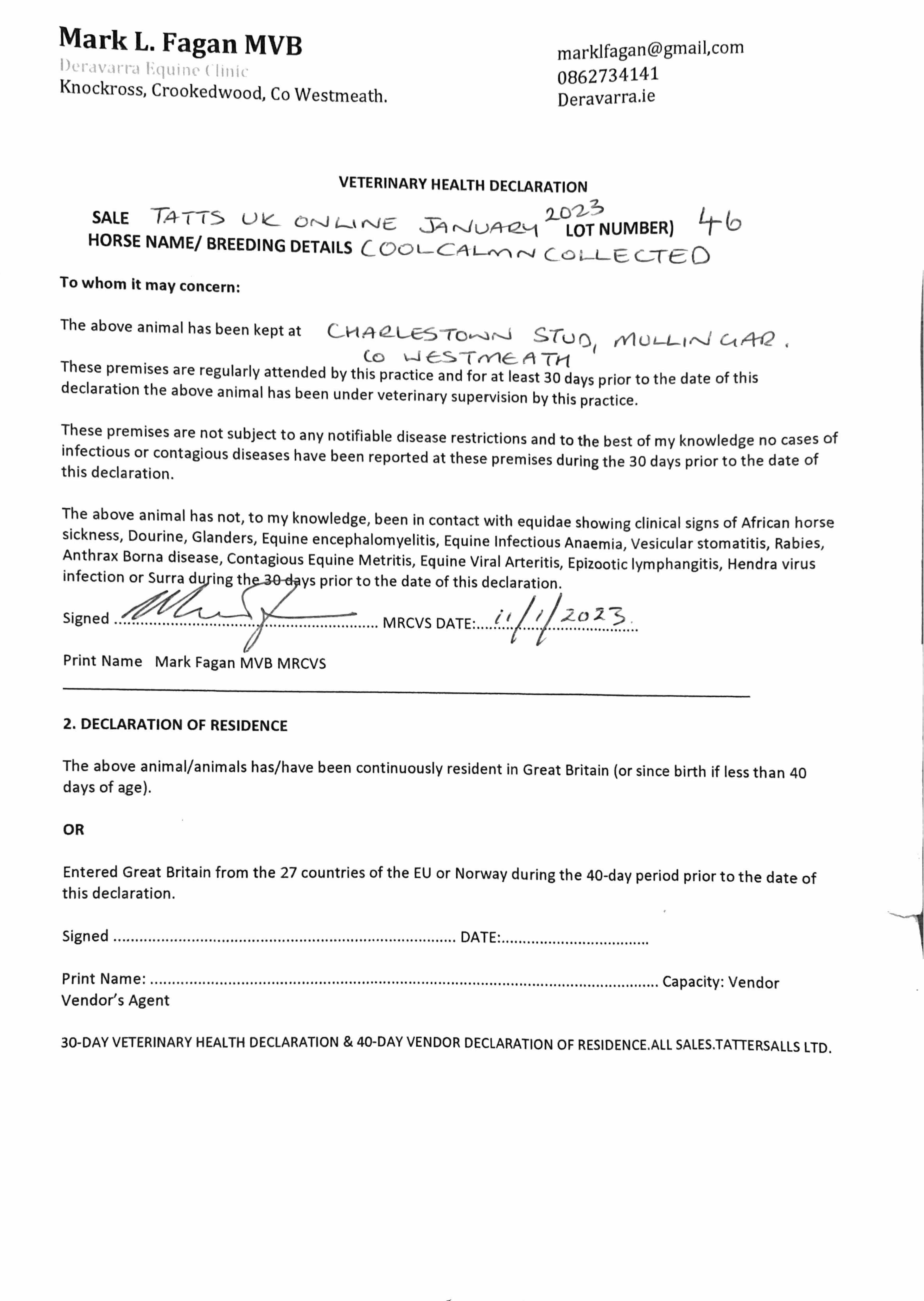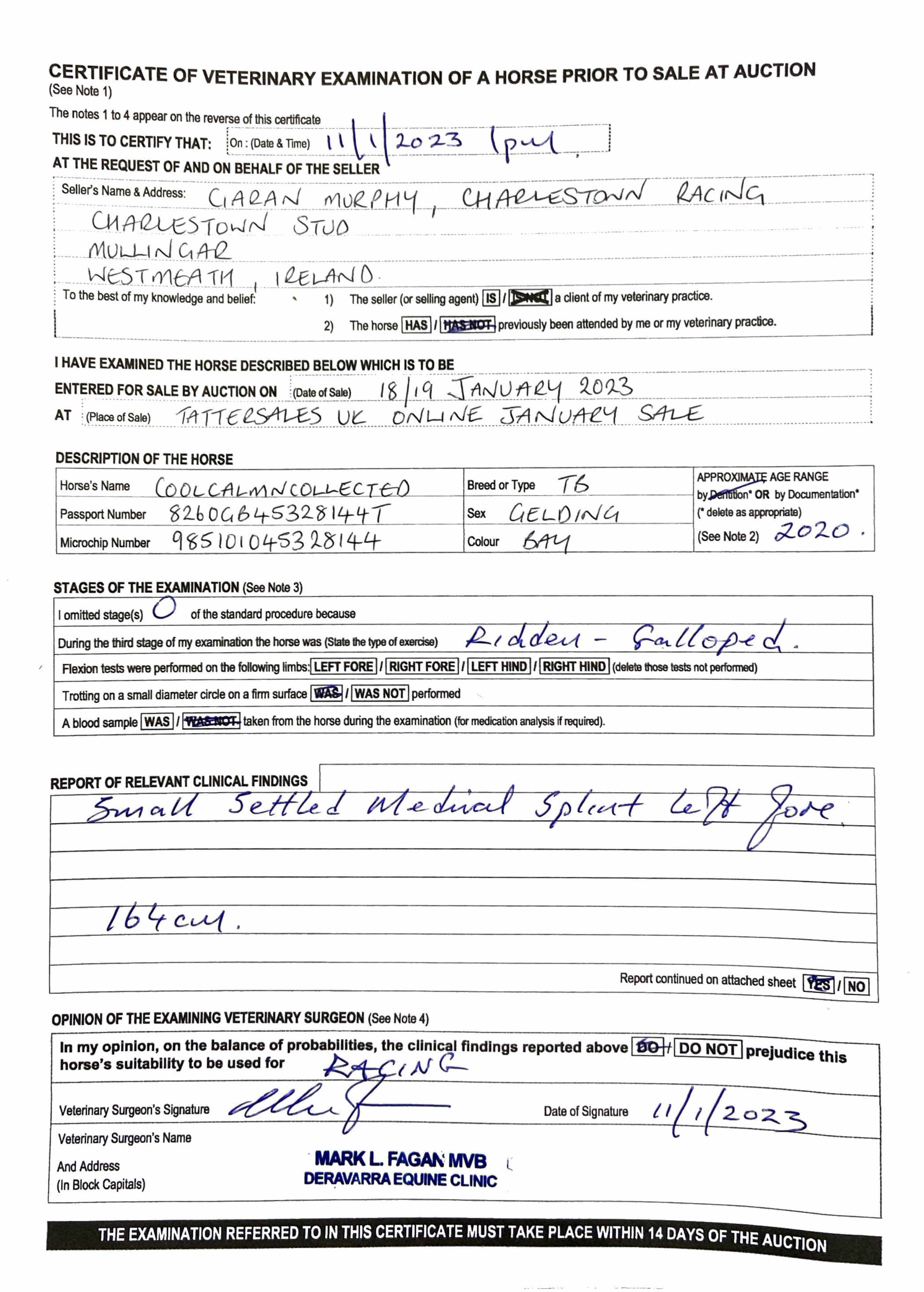 • Ran third since catalogue publication at Dundalk, Ireland on the 18th January.