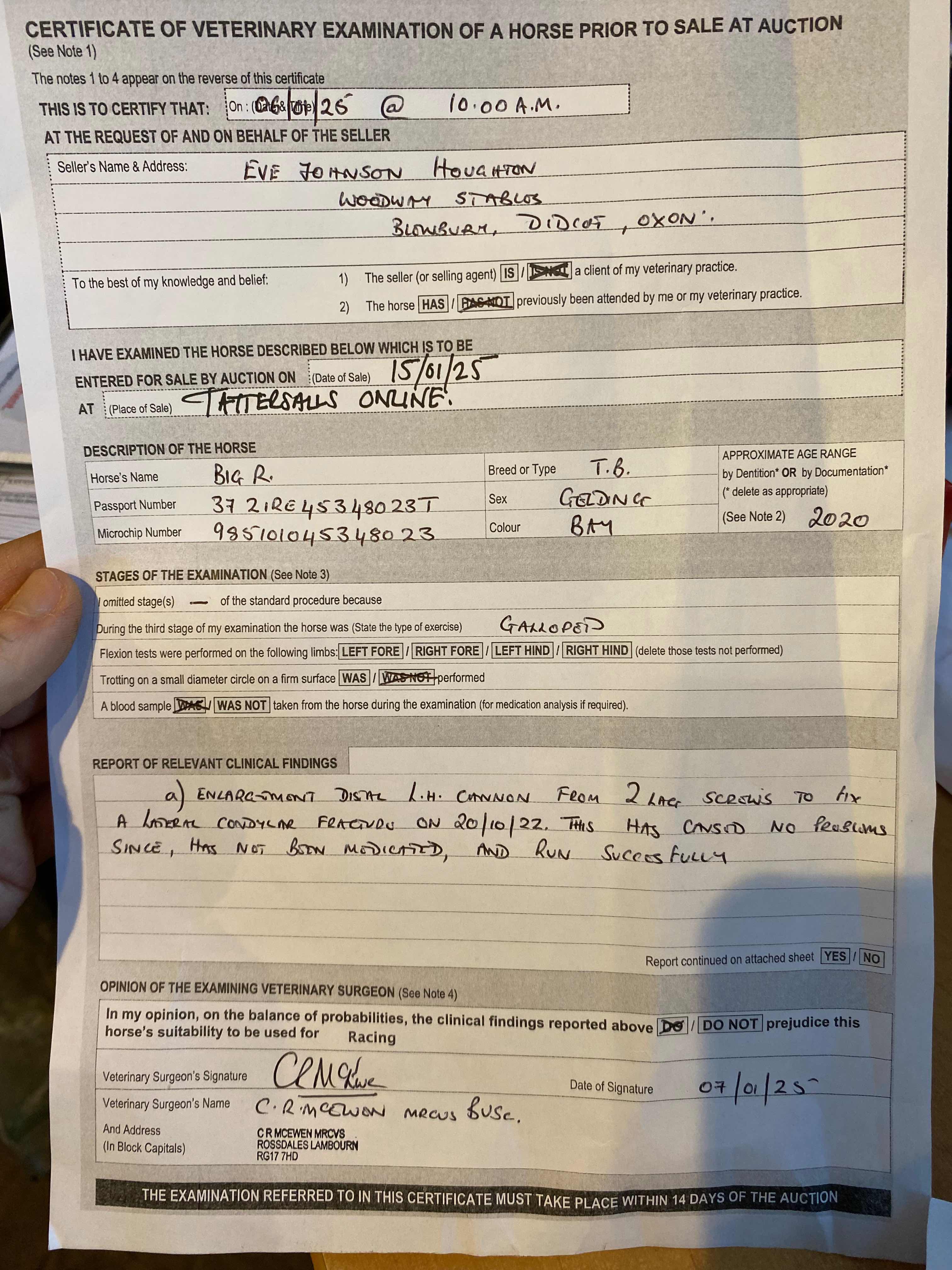 For time sensitive requests please call Tattersalls on +44(0)1638665931
