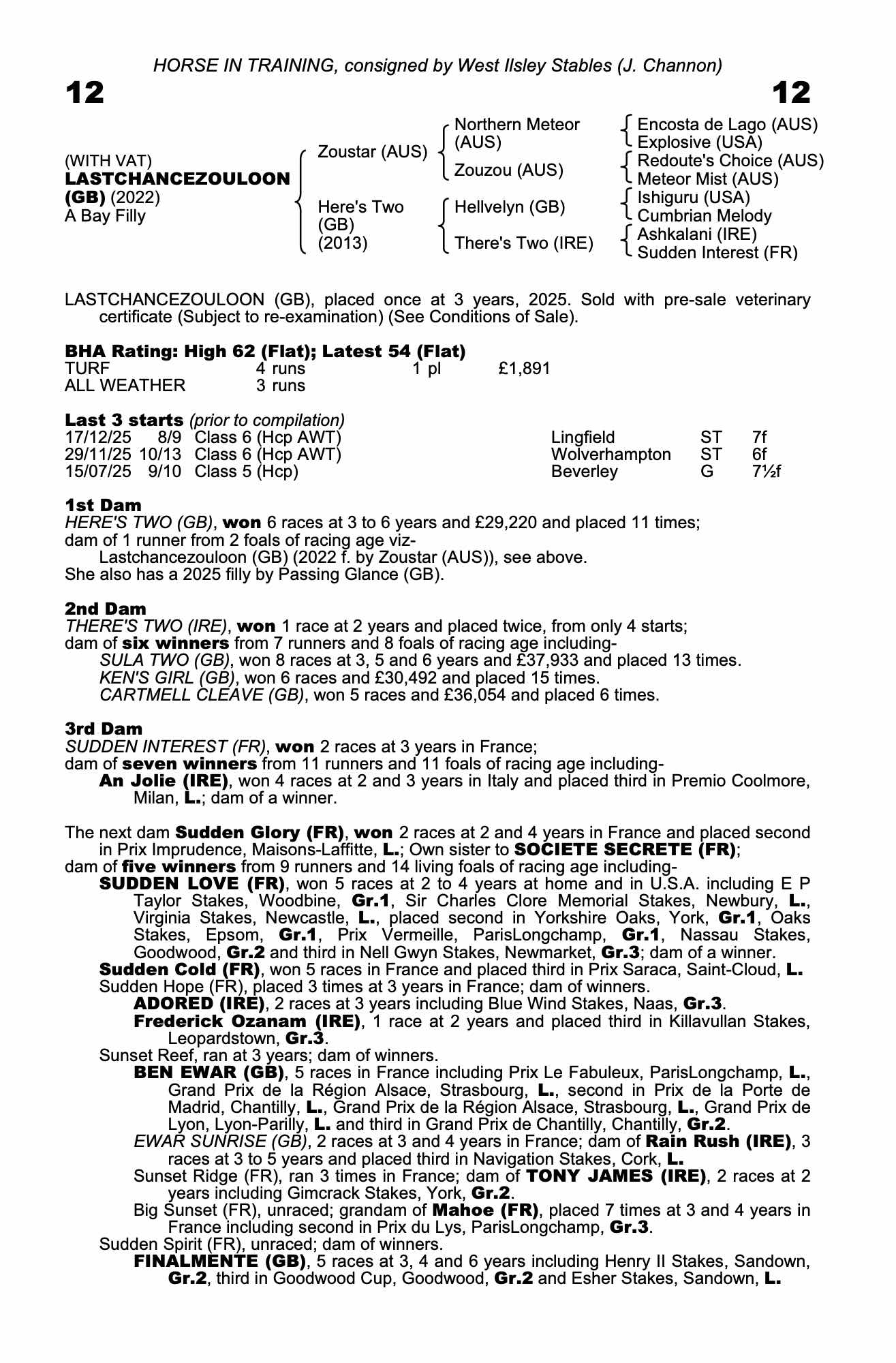 Vendor's Notes: 3yo bay filly, current OR of 54, placed twice over 7f and 6f, dam a winner over 6f - 1m. Sound, easy to do and ready to go on with.