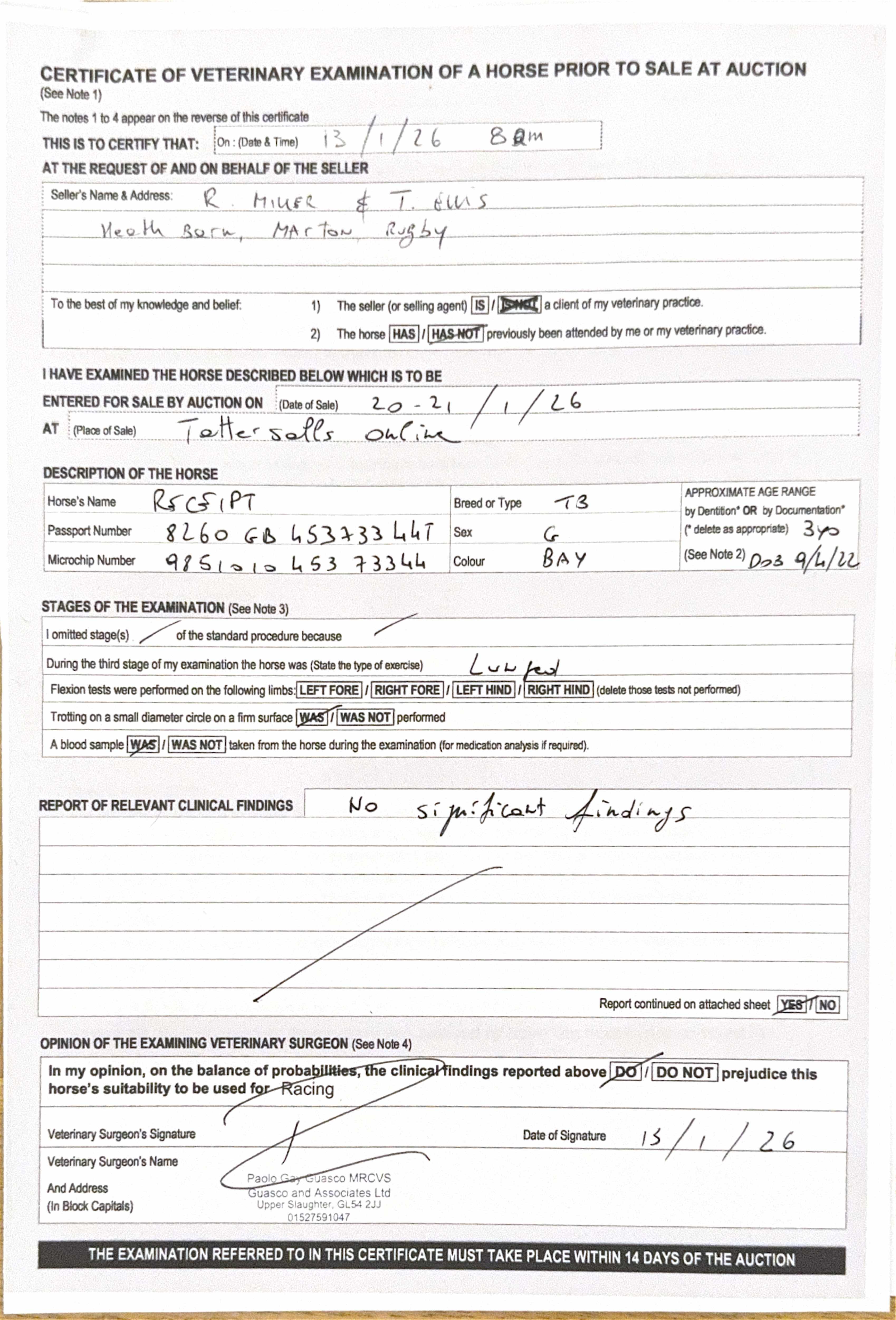 Vendor's Notes: A big horse who showed improved form on his second start in a bumper, could go back on the flat or Juvenile Hurdling.