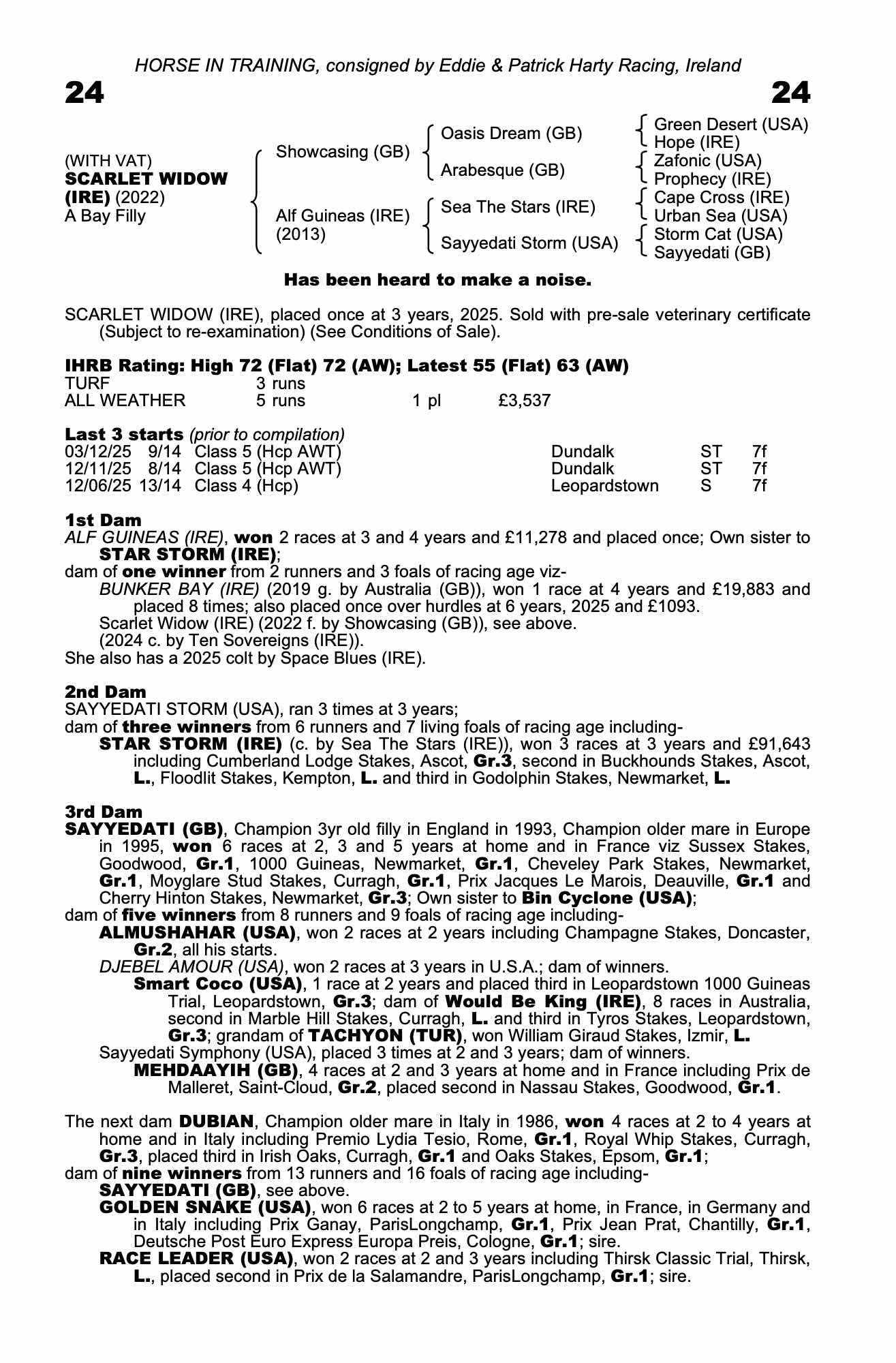 Consignor: Eddie & Patrick Harty Racing, Ireland