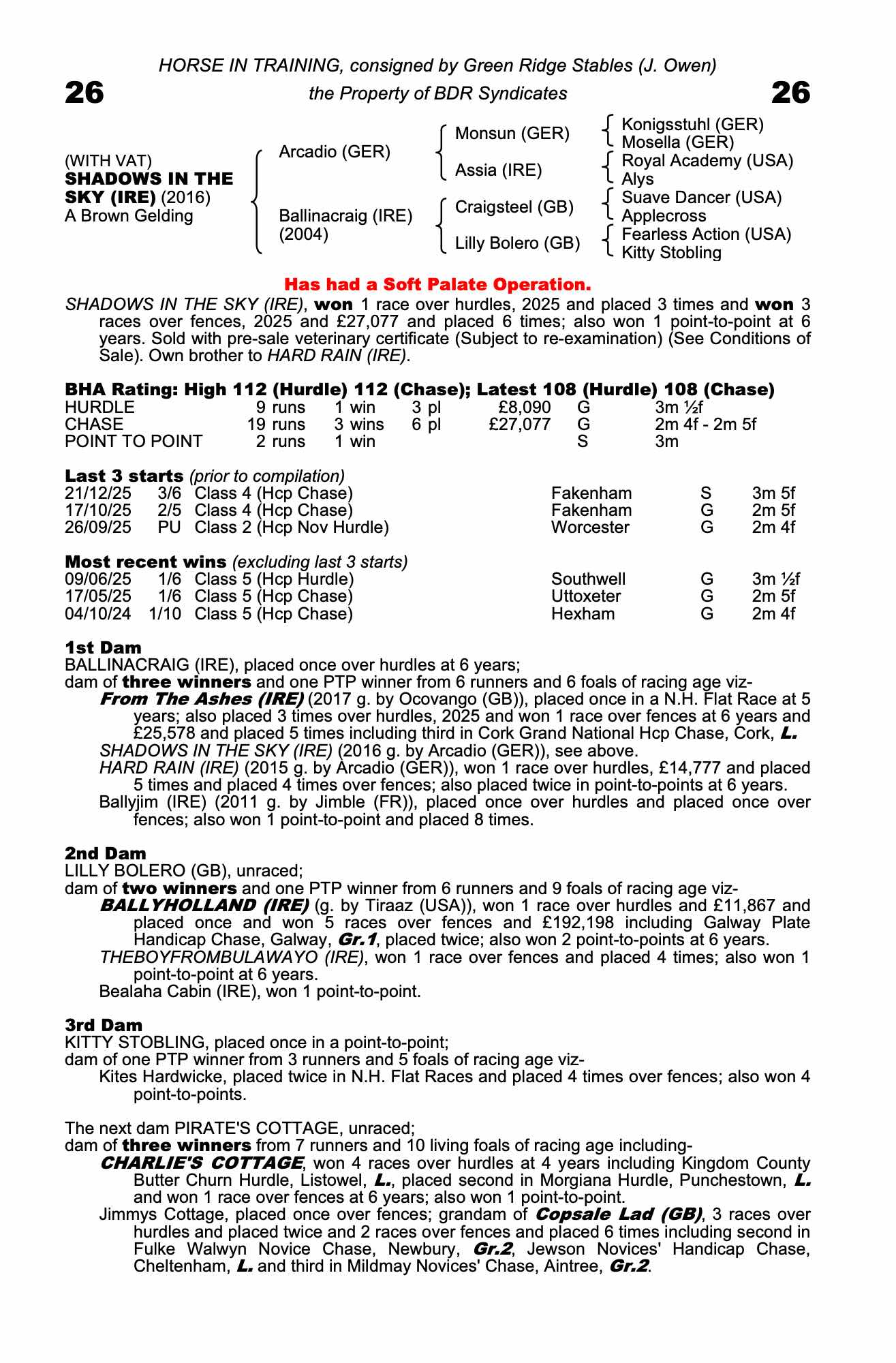 Friday 16 January:  15/01/26 – PU in 2m 7½f Class 4 (Hcp Chase), Newcastle (GS)
