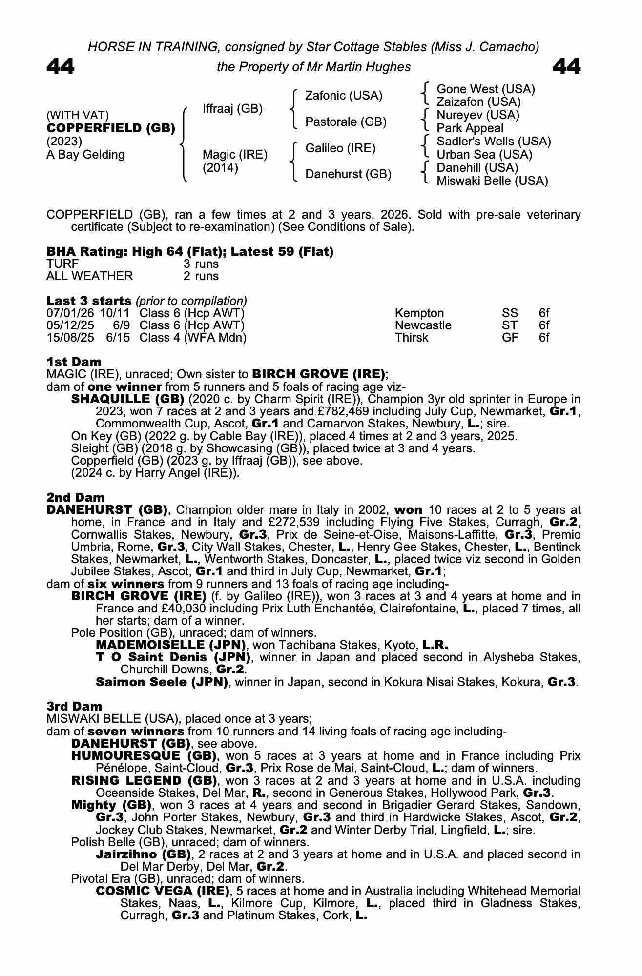 Consignor: Star Cottage Stables (Miss J. Camacho)