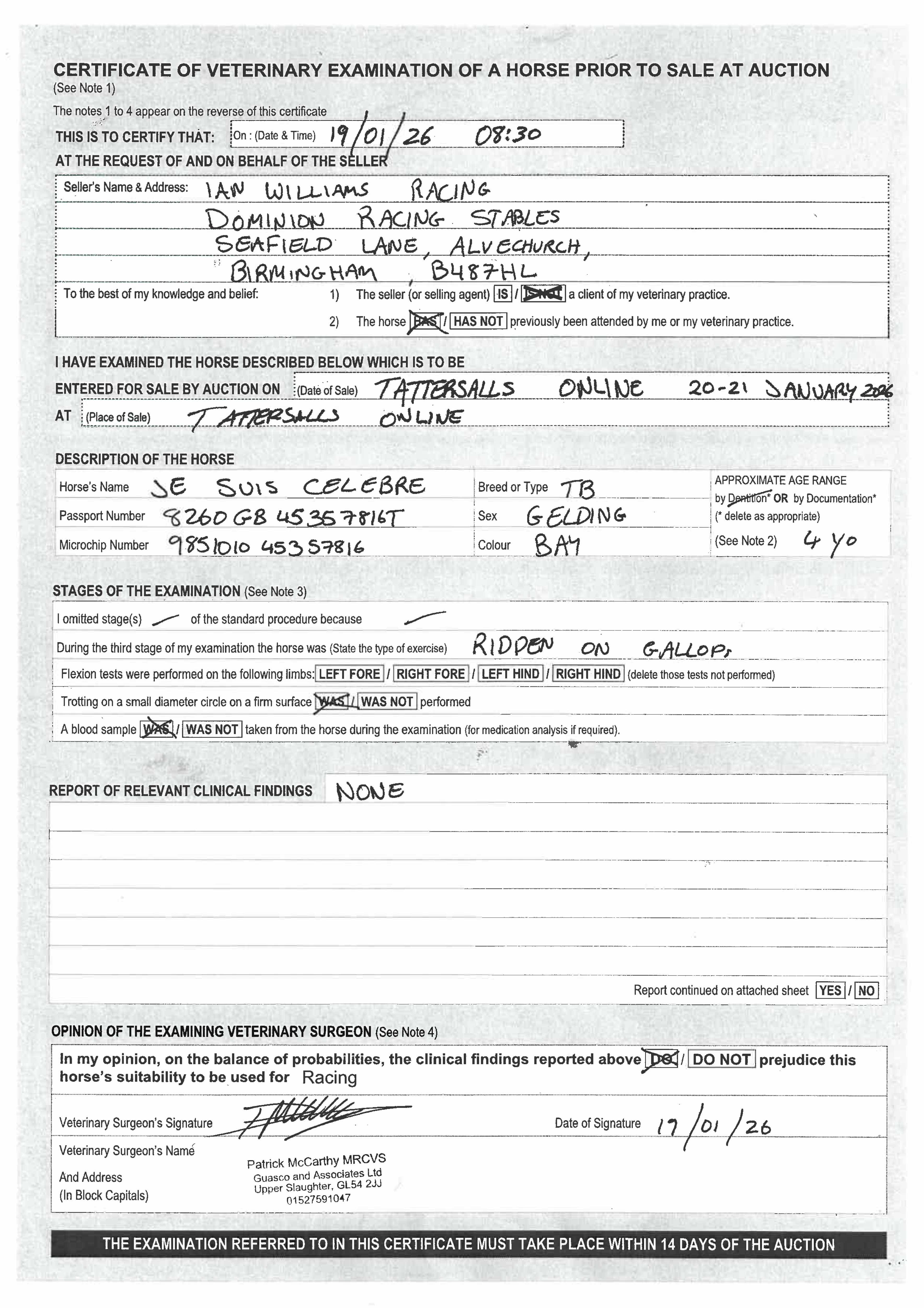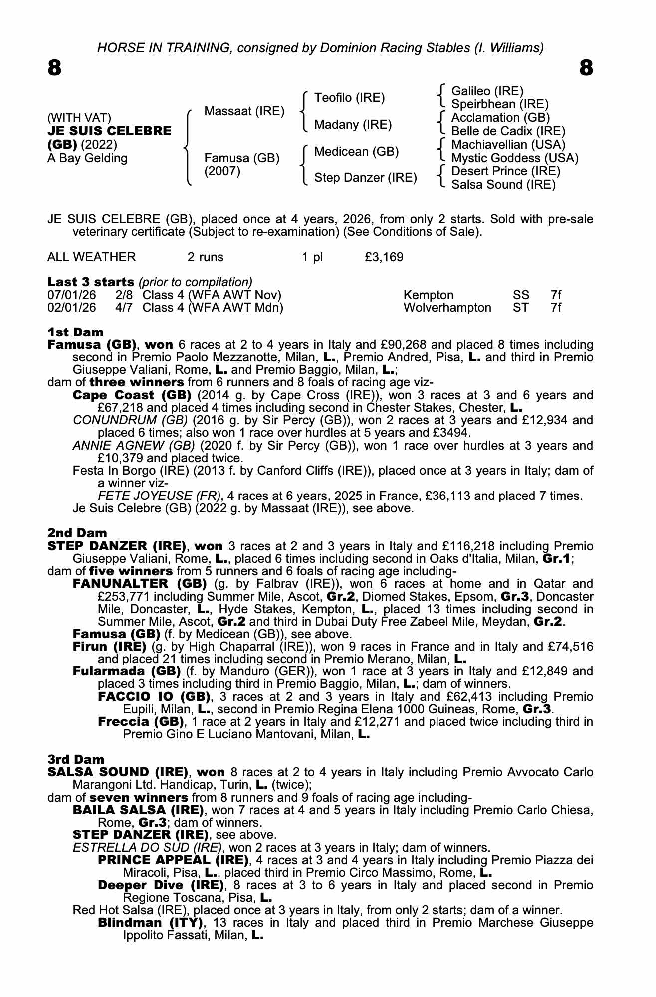 Vendor's Notes: Attractive 4 year old gelding who has shown progressive form in two starts, latterly with a close 2nd at Kempton to smart dual winner (7th January 2026). Still learning on the job and plenty more improvement to come.