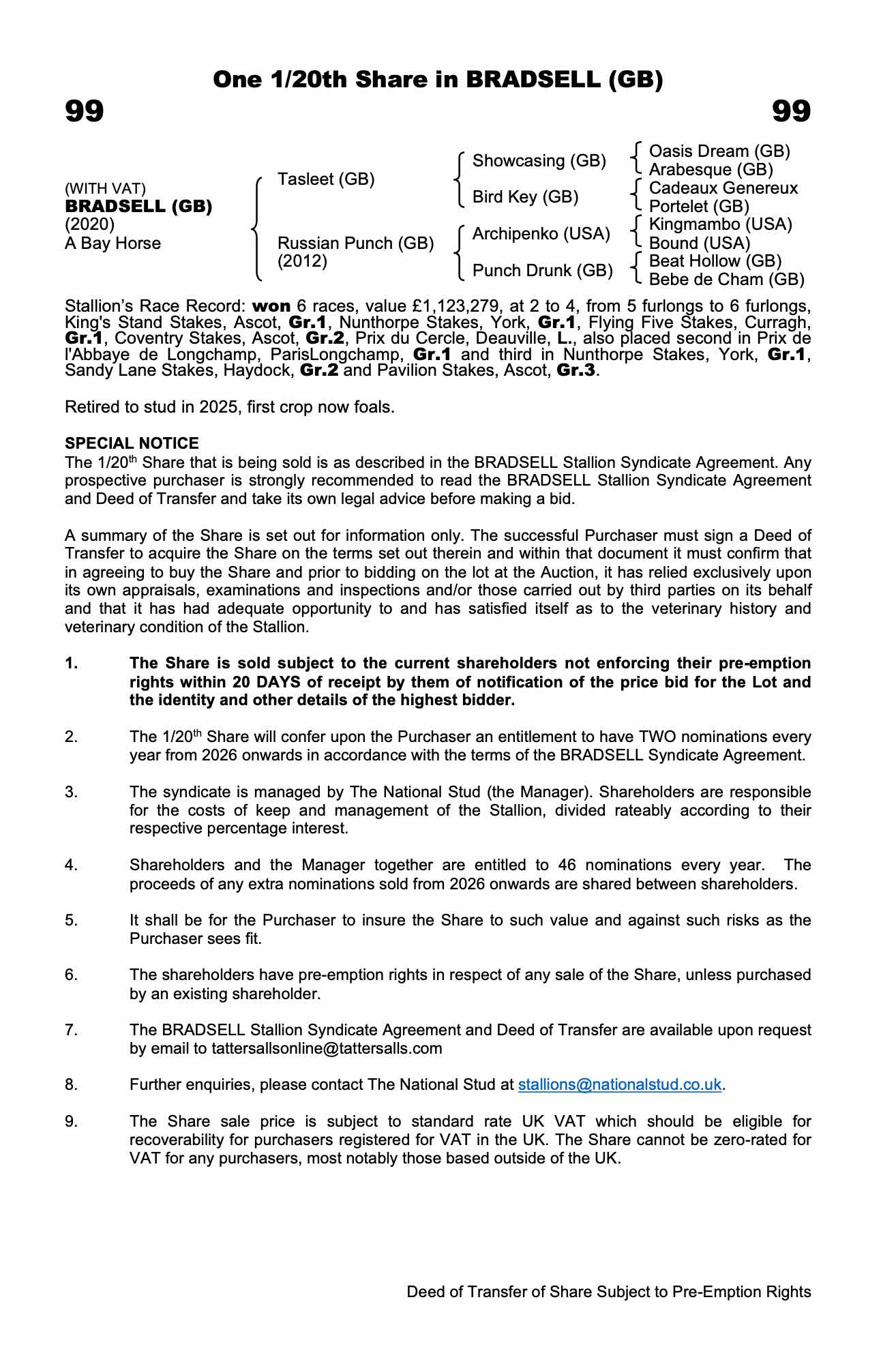For time sensitive requests please call Tattersalls on +44(0)1638665931