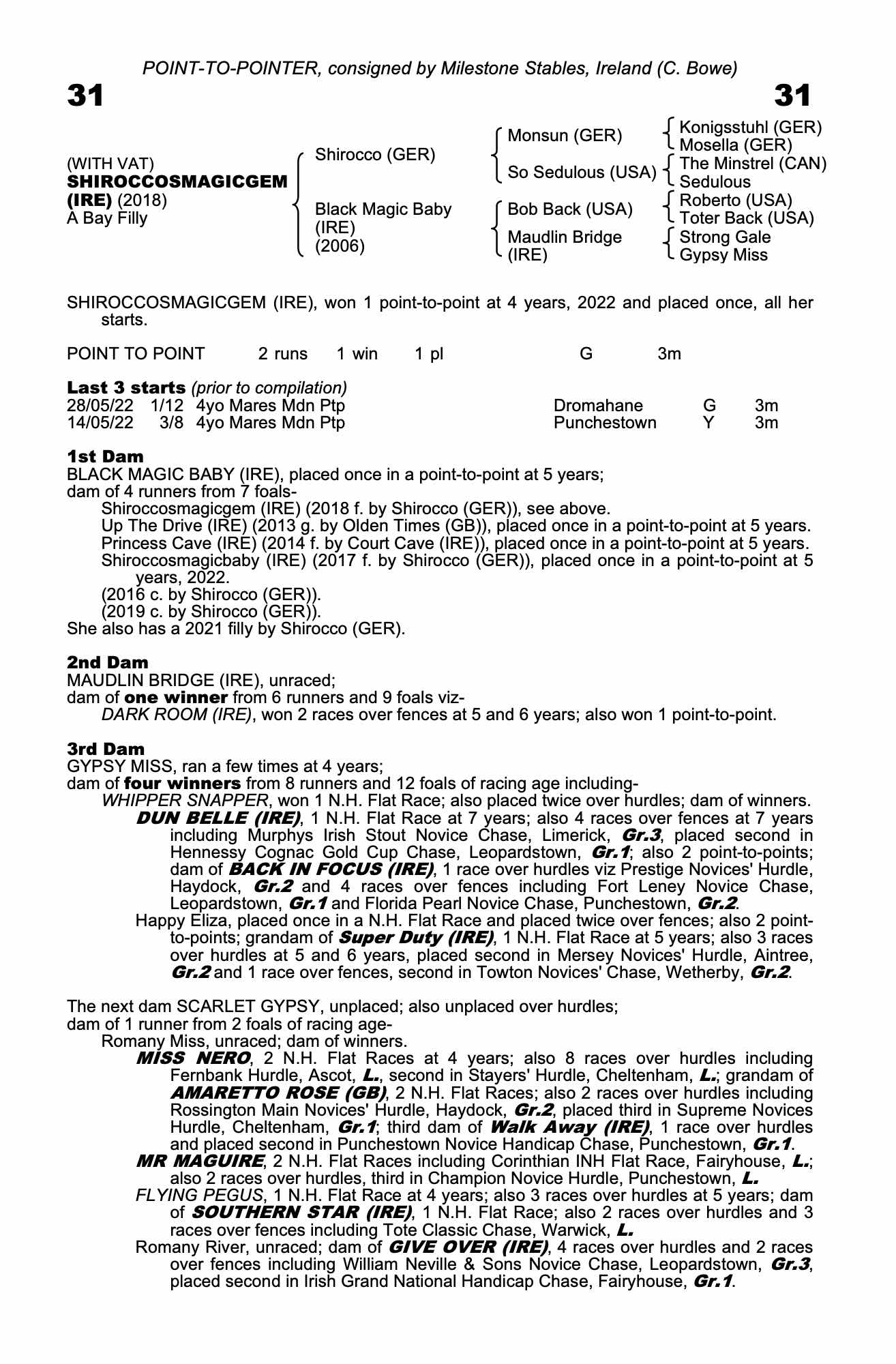 Consignor: Milestone Stables, Ireland (C. Bowe)
