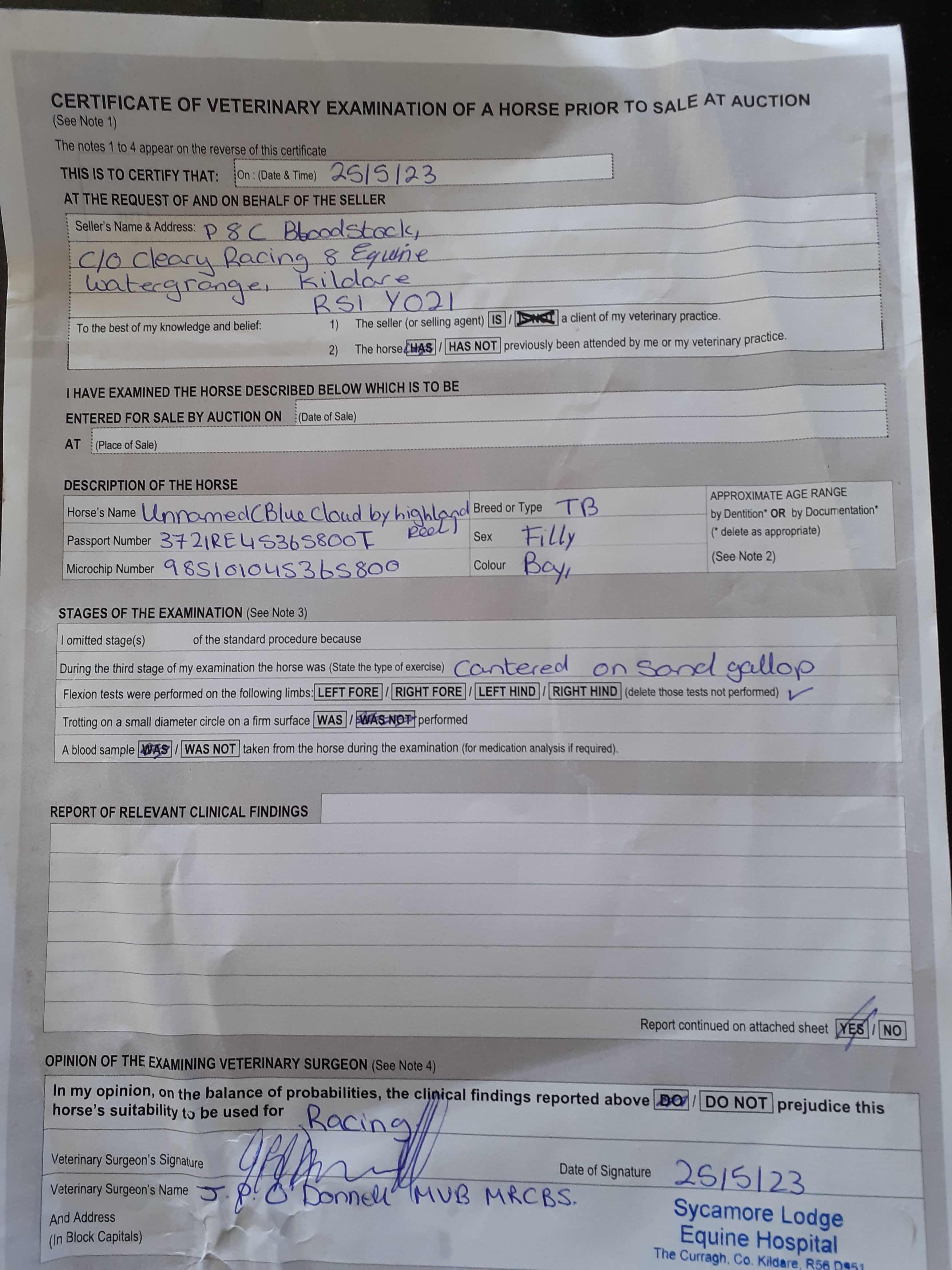 For time sensitive requests please call Tattersalls on +44(0)1638665931