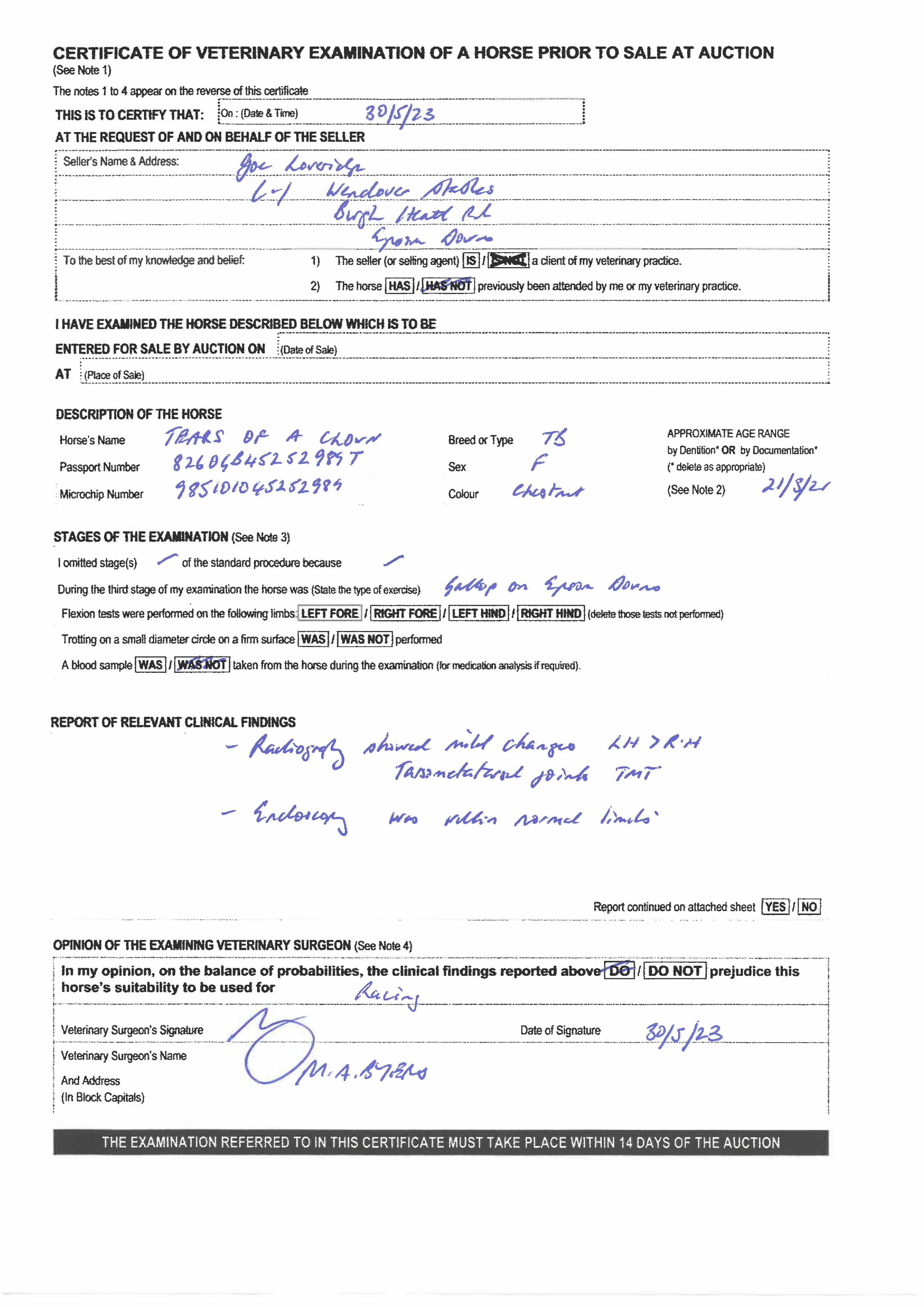 For time sensitive requests please call Tattersalls on +44(0)1638665931