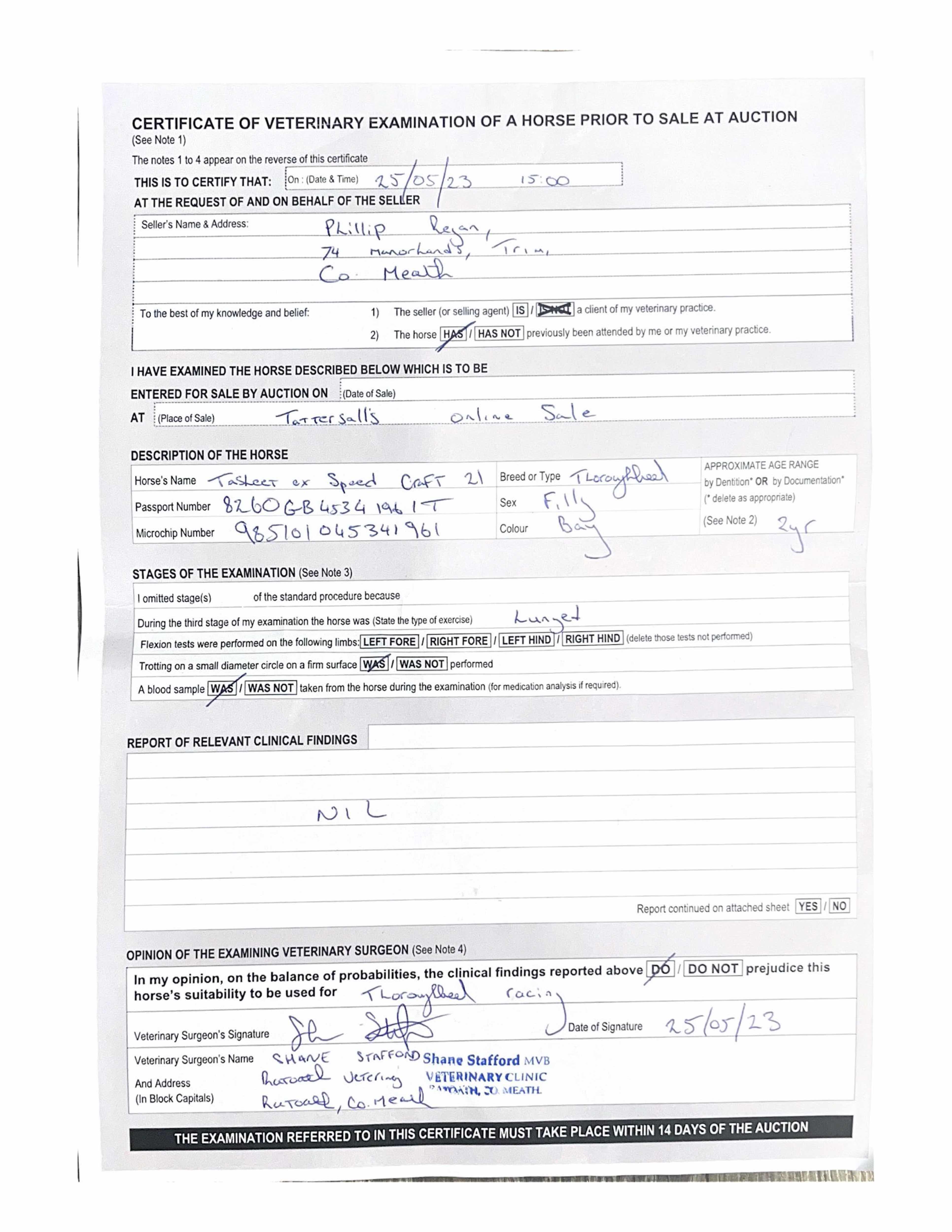 For time sensitive requests please call Tattersalls on +44(0)1638665931