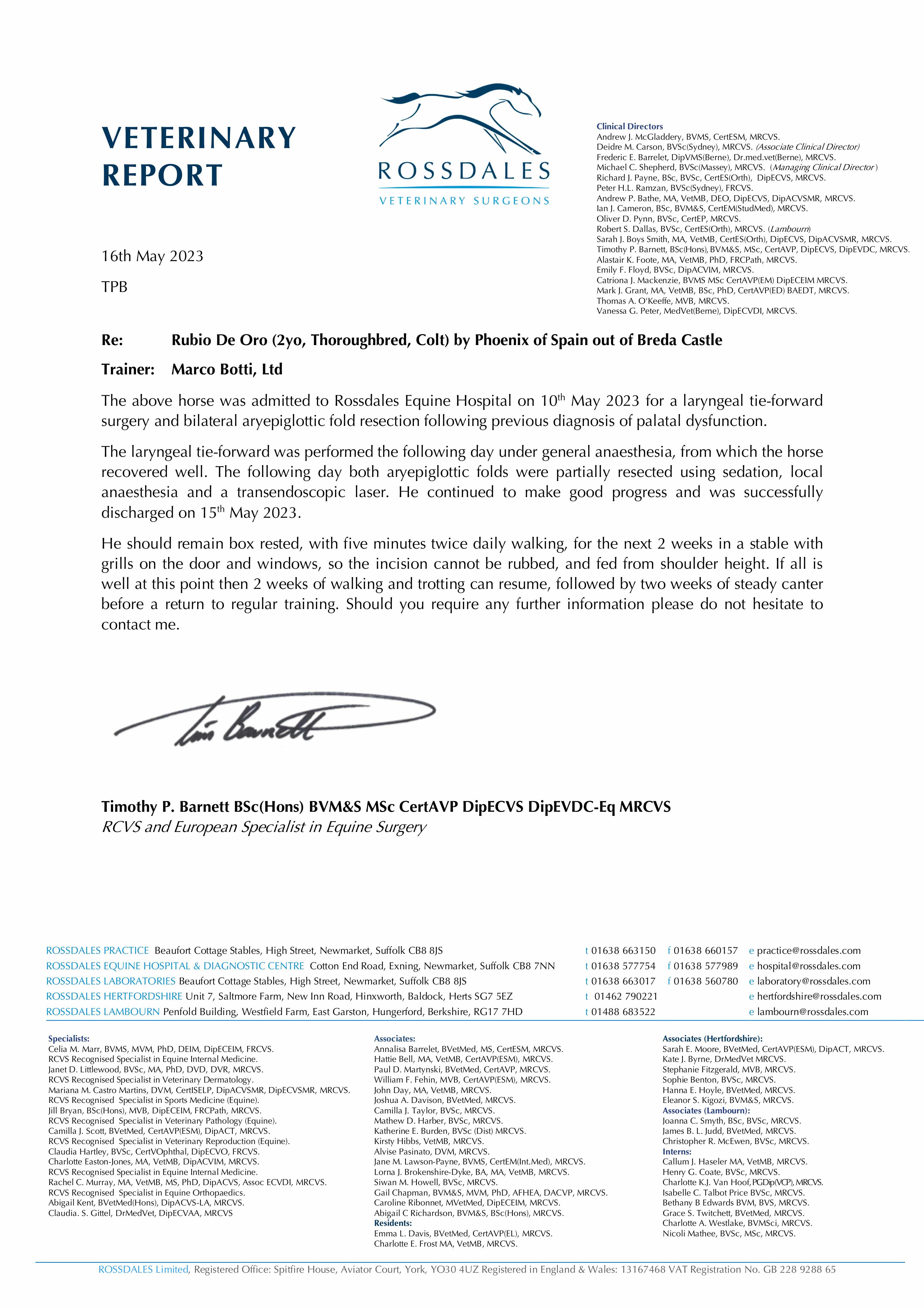 Vendor's Notes: Rubio de Oro is a sound horse, who handles any ground including the all-weather. He stays well and will win races over a trip (1m 6f+)