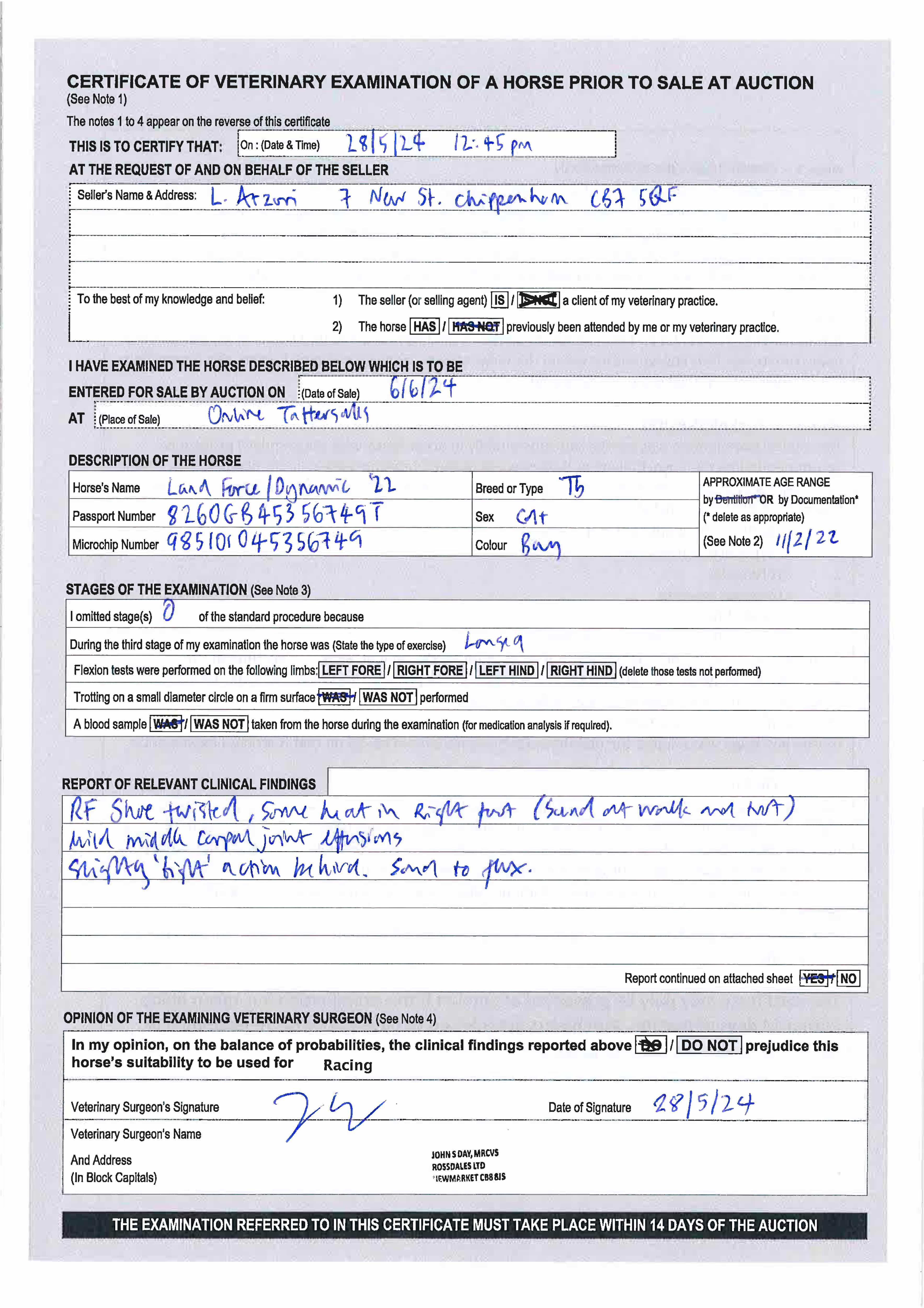 For time sensitive requests please call Tattersalls on +44(0)1638665931