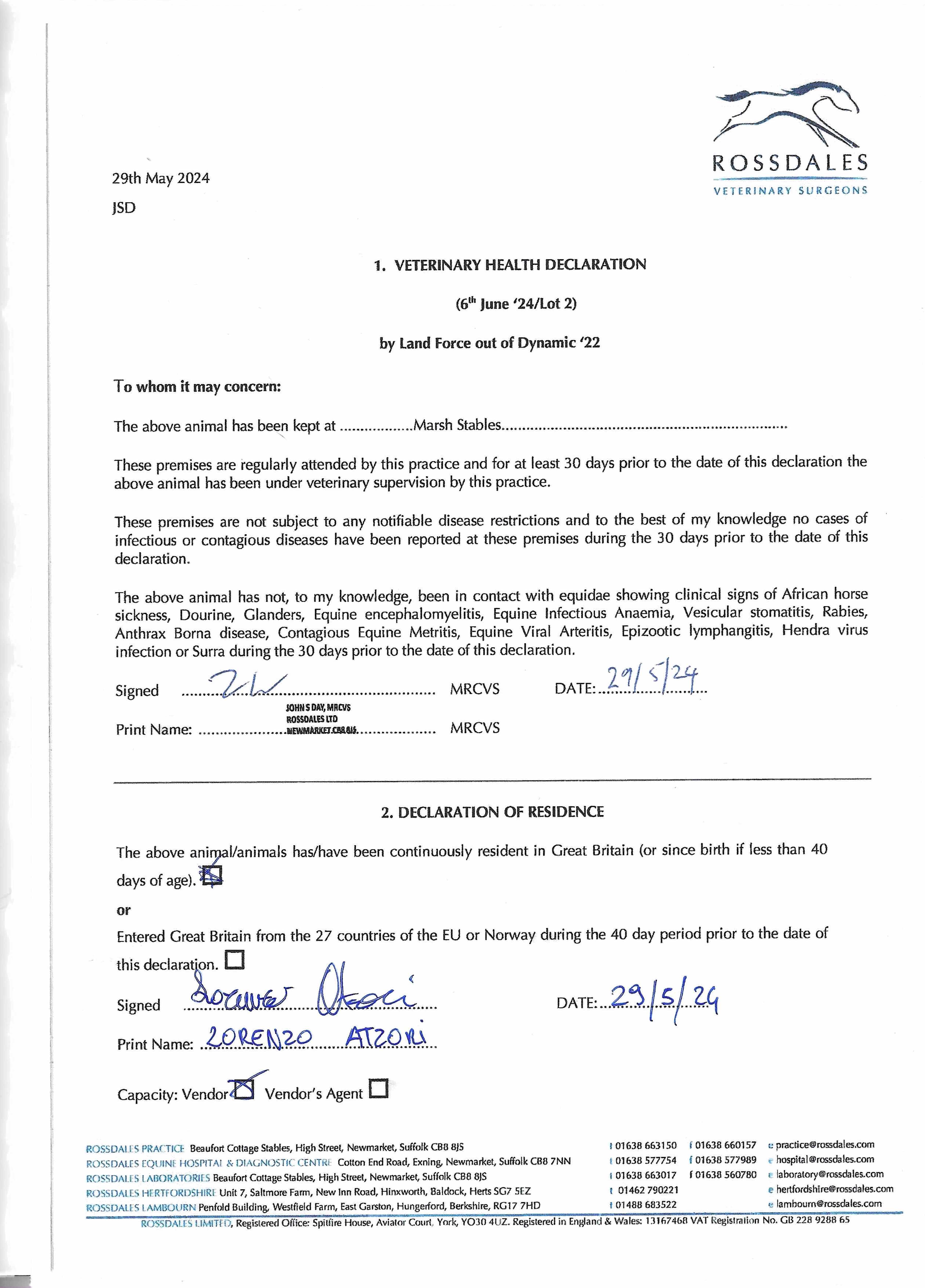 Vendor's Notes: A strong colt by LAND FORCE, out of LISTED winning mare.