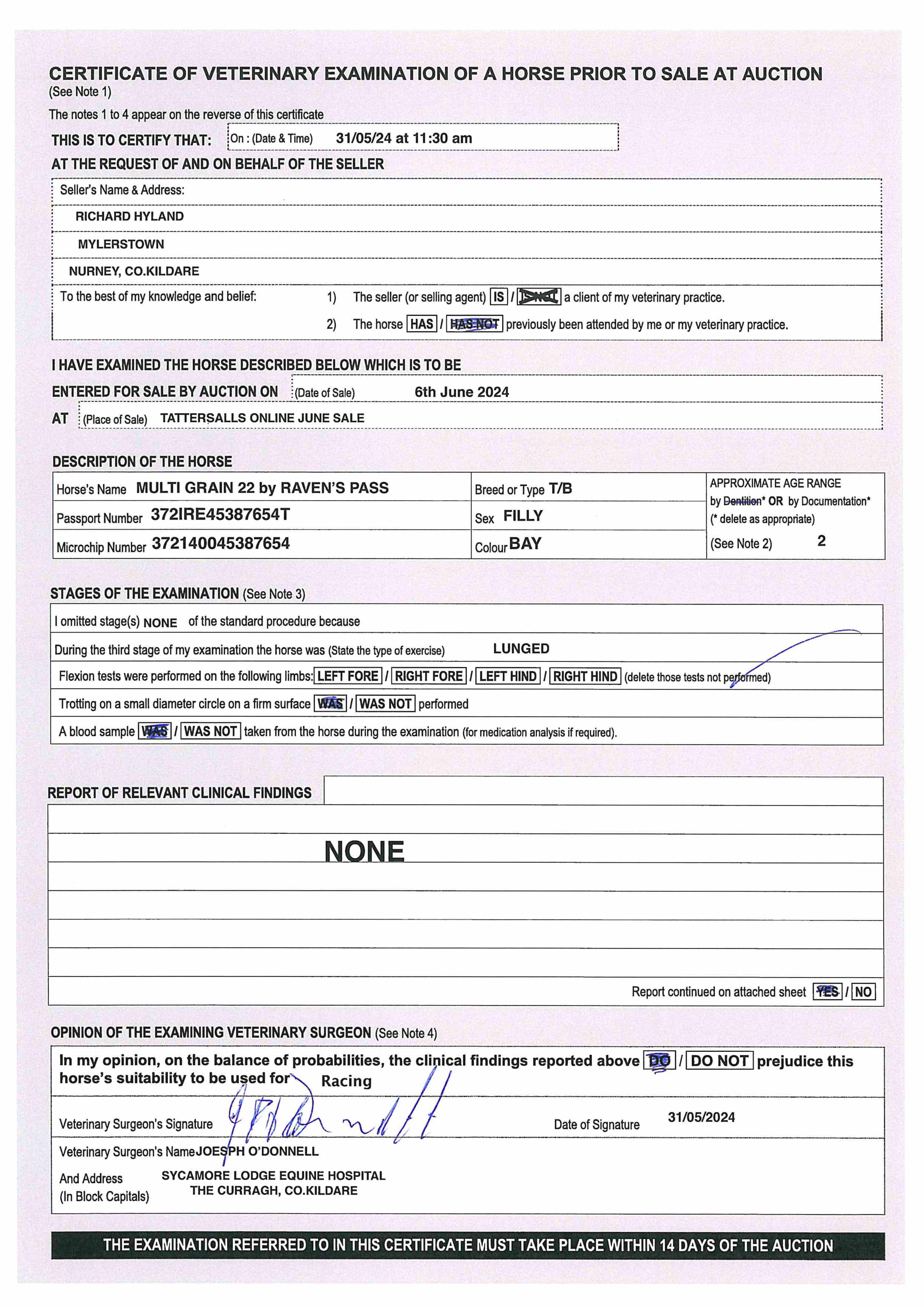 Vendor's Notes: Lovely honest filly, clear winded, will make into a nice 3 year old and will improve going forward