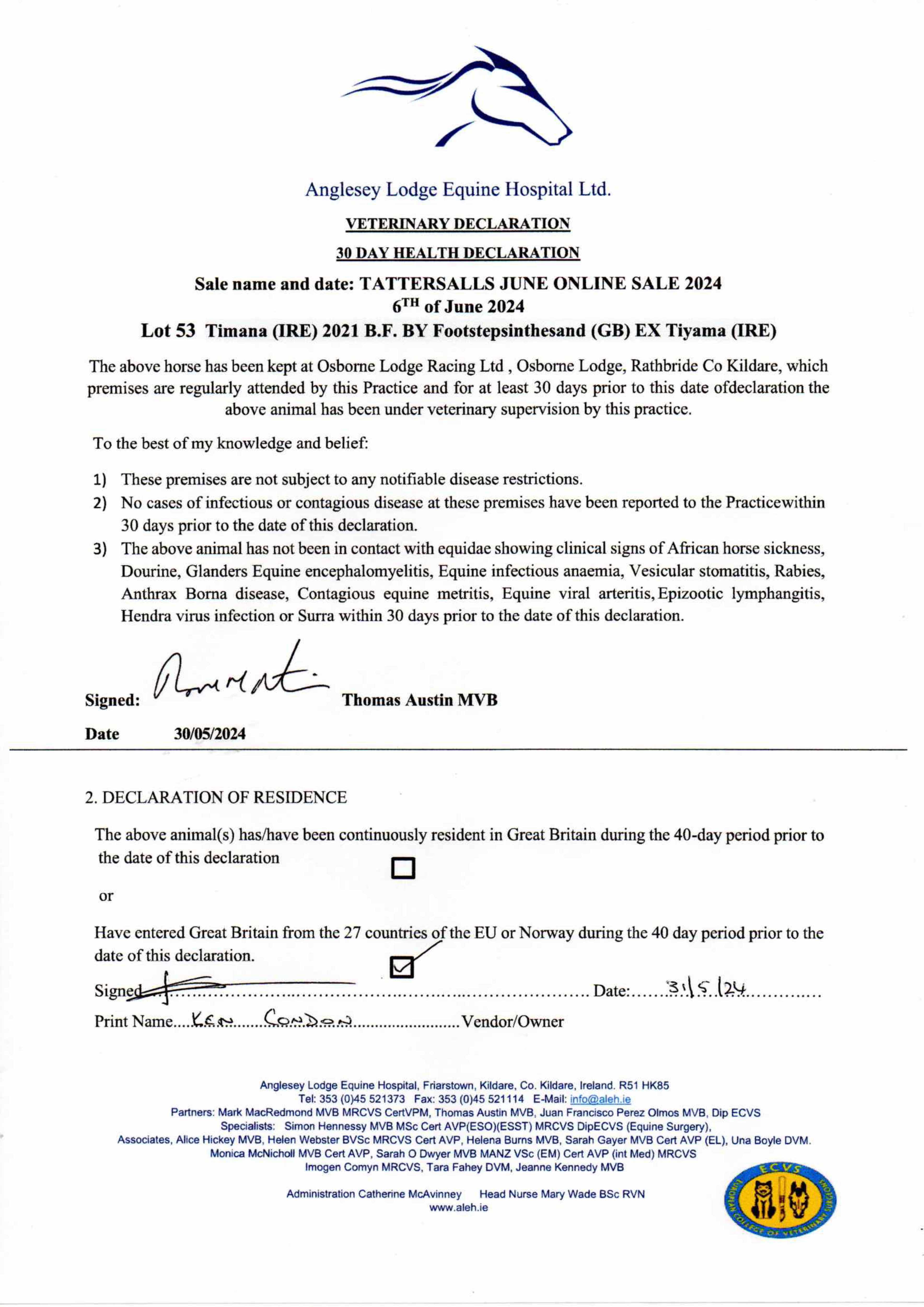 Vendor's Notes: By the sire of Group 1-winning filly Chachamaidee, TIMANA is a lightly raced filly that has been placed twice from 3 starts. She shares her dam-sire with Group 1-winning fillies such as Fev Rover and is from the family of Muhaarar.