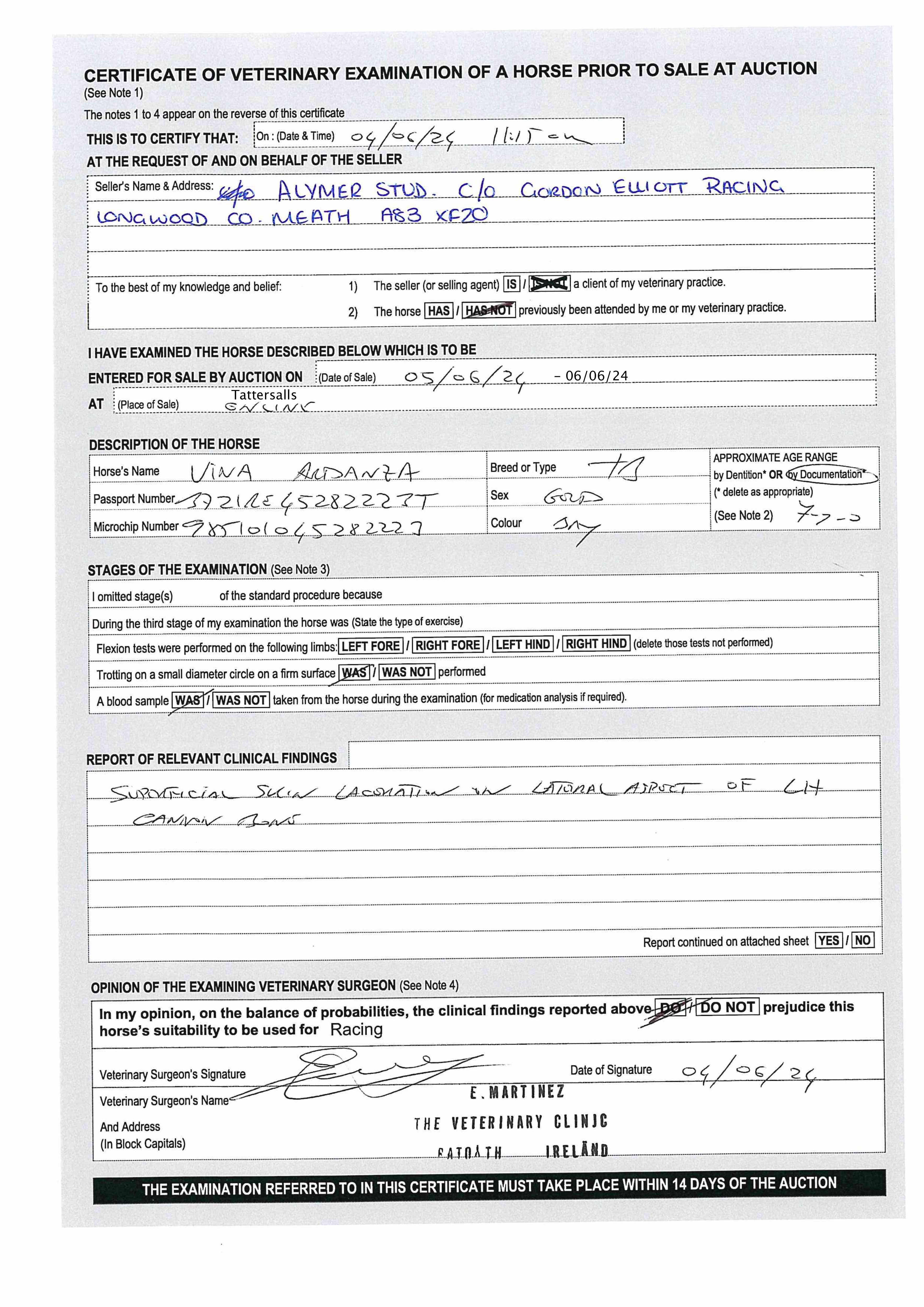 Vendor's Notes: Vina Ardanza is a three time winner over hurdles and fences currently rated 133 in Ireland. He is Grade 1 placed over Hurdles and has won in excess of €45,000. Please get in touch if you require any further info.