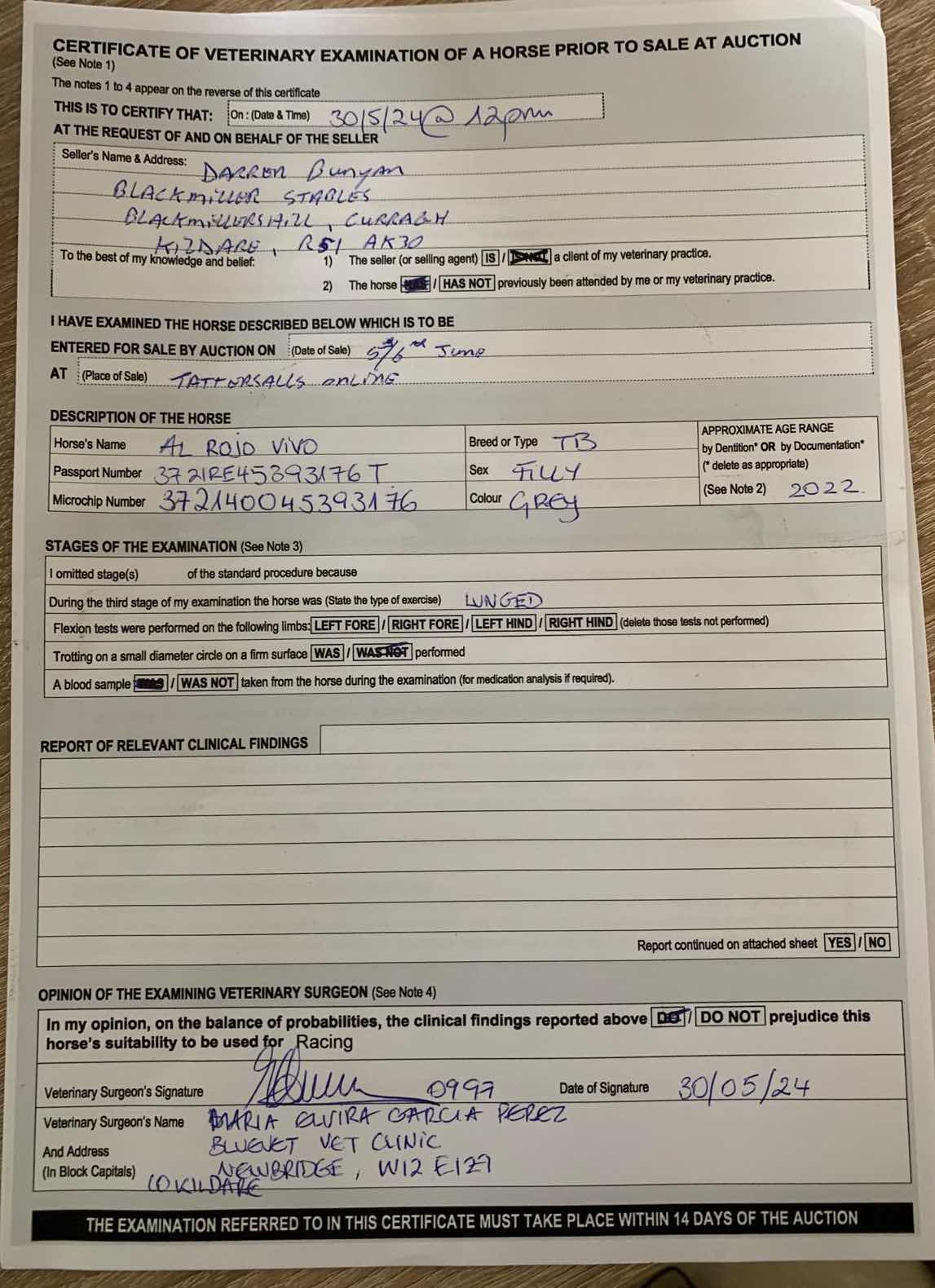 For time sensitive requests please call Tattersalls on +44(0)1638665931