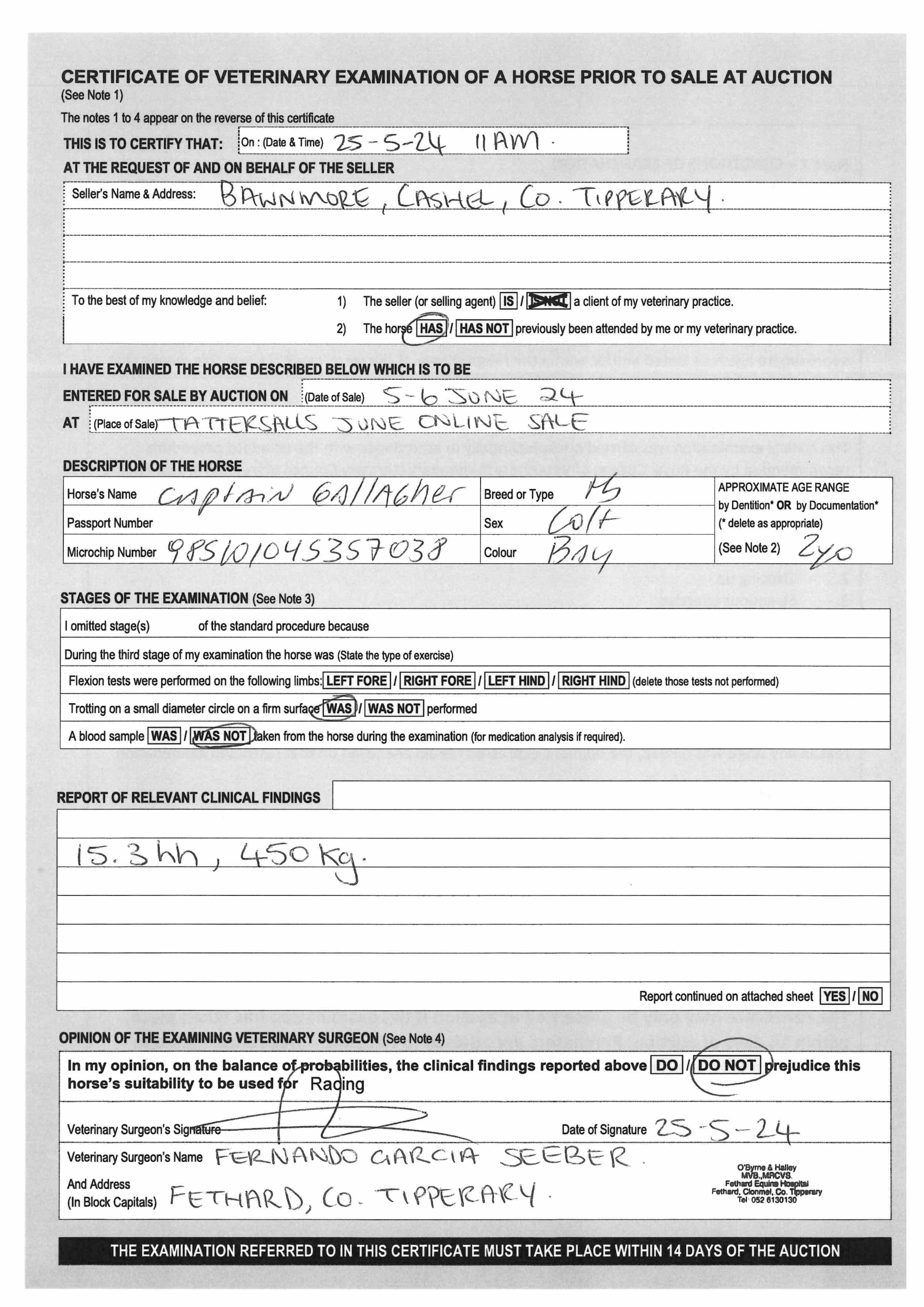 Vet Certificate