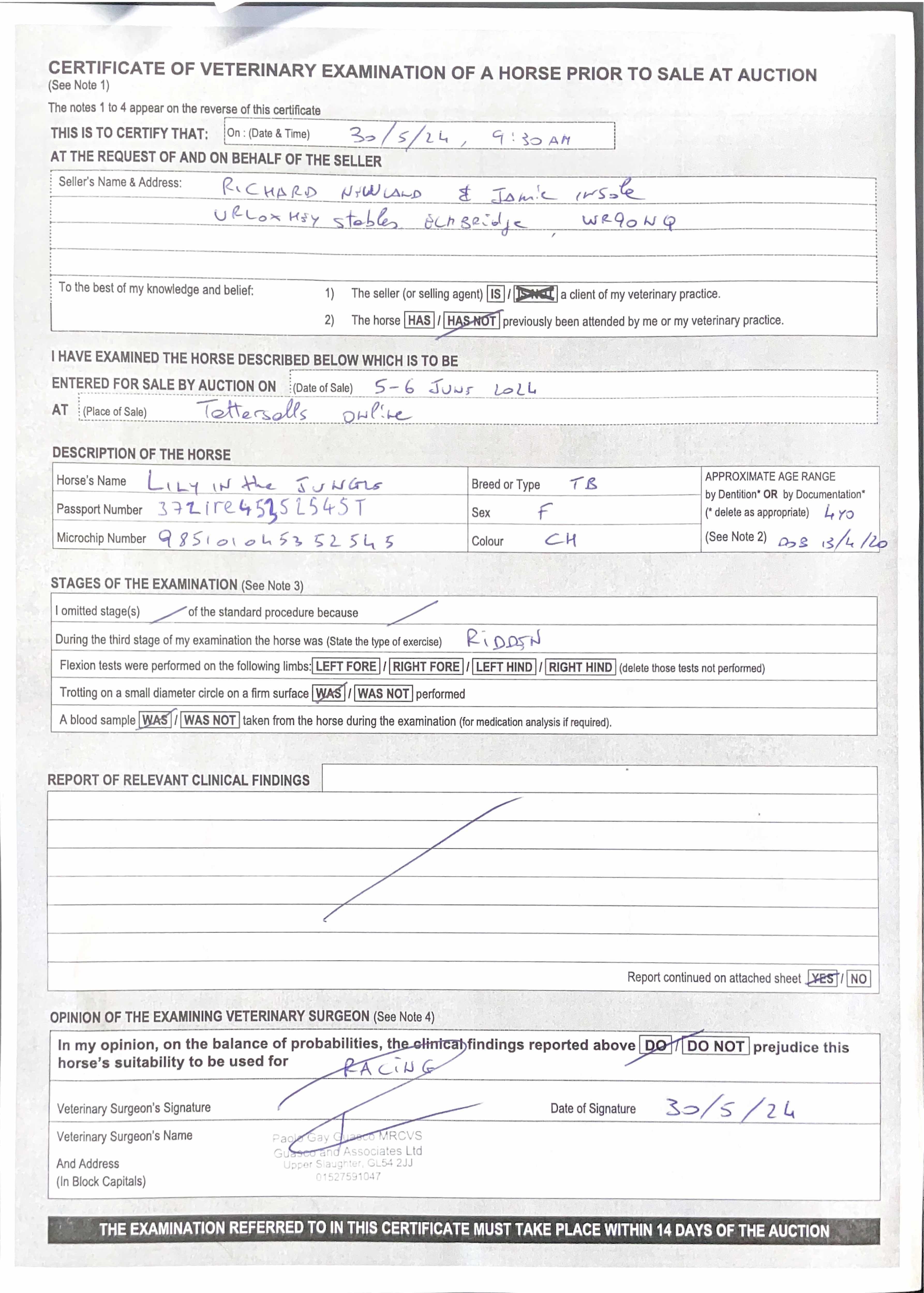 Consignor: Urloxhey Stables (R. Newland & J. Insole)