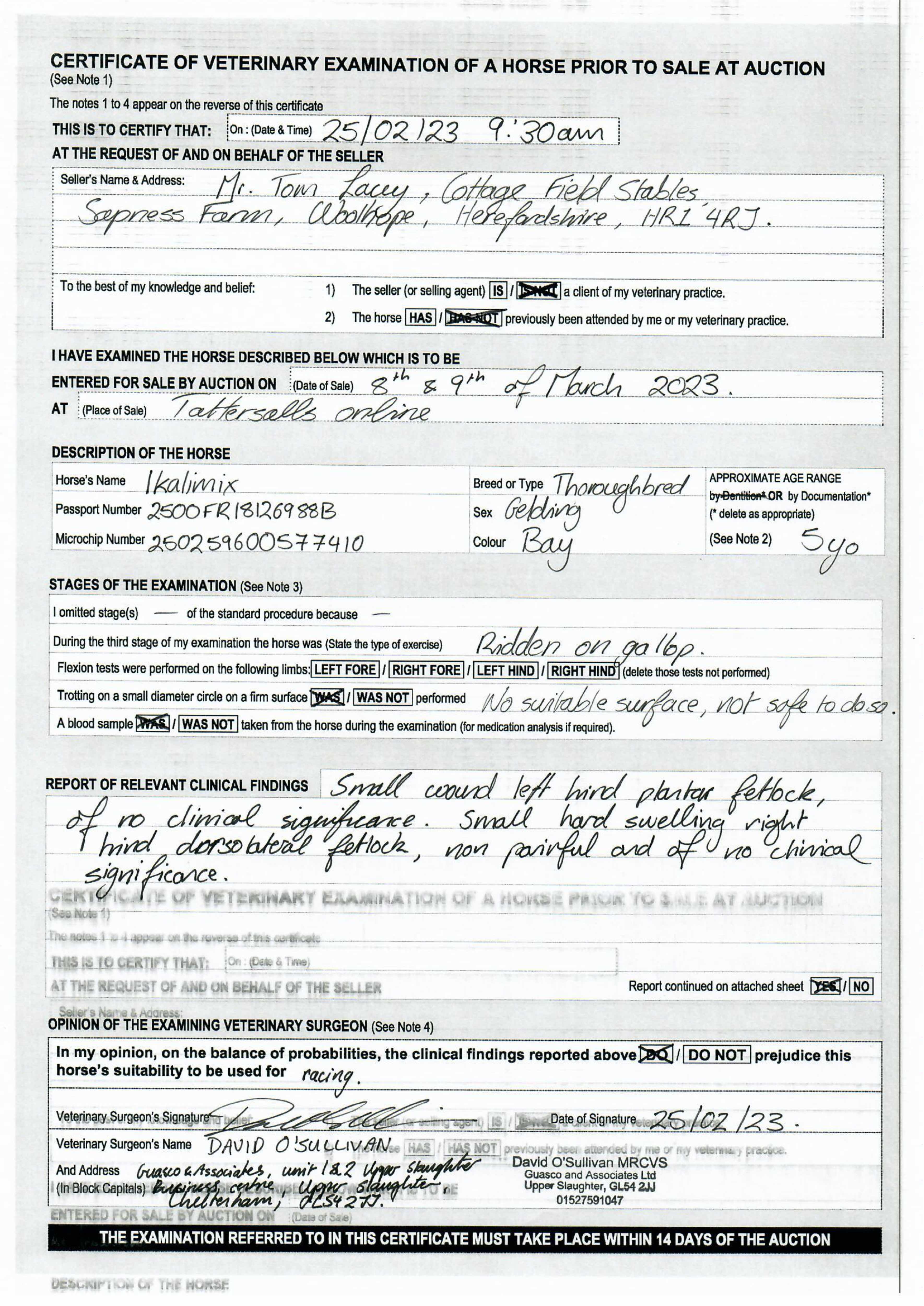For time sensitive requests please call Tattersalls on +44(0)1638665931