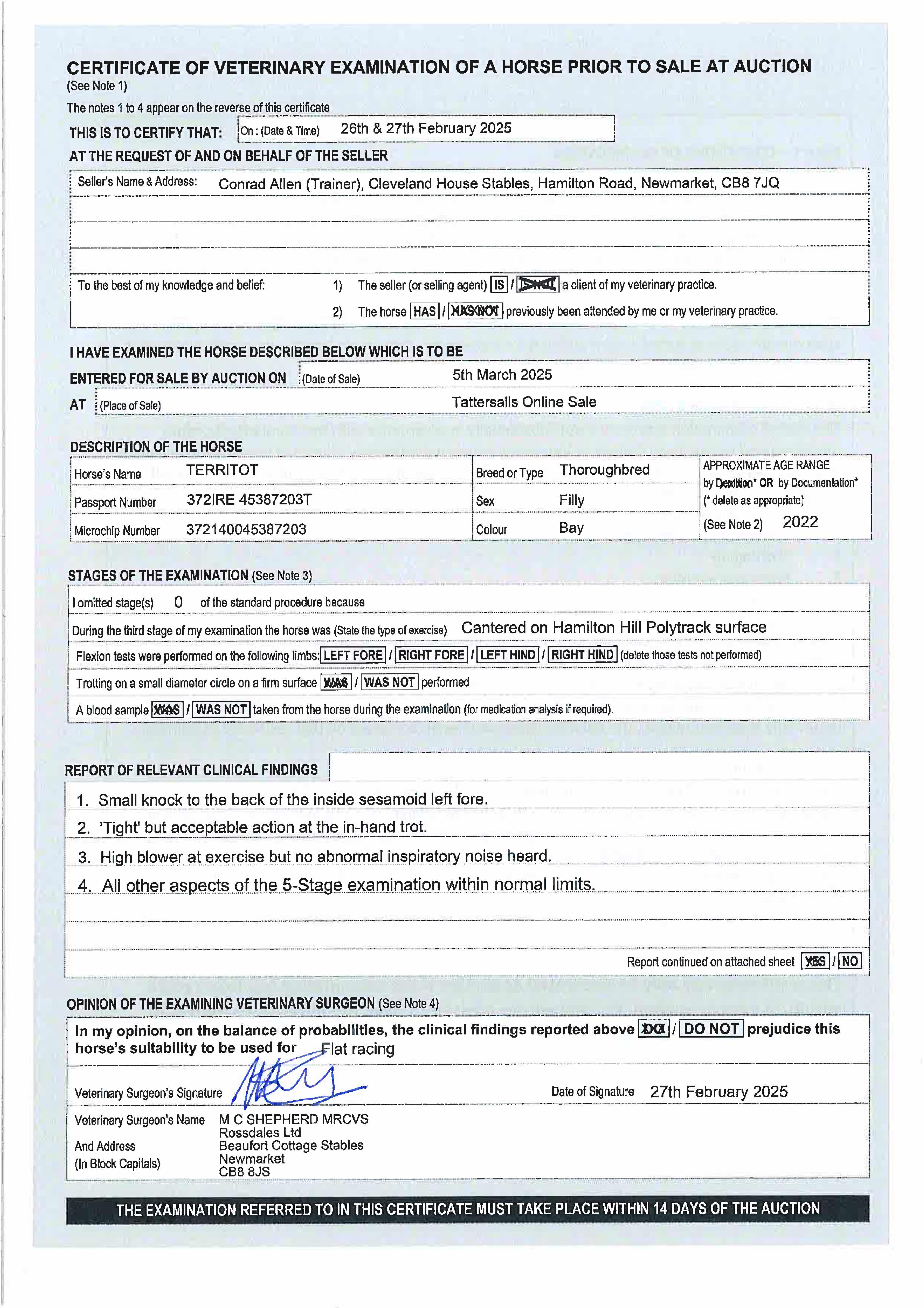 For time sensitive requests please call Tattersalls on +44(0)1638665931