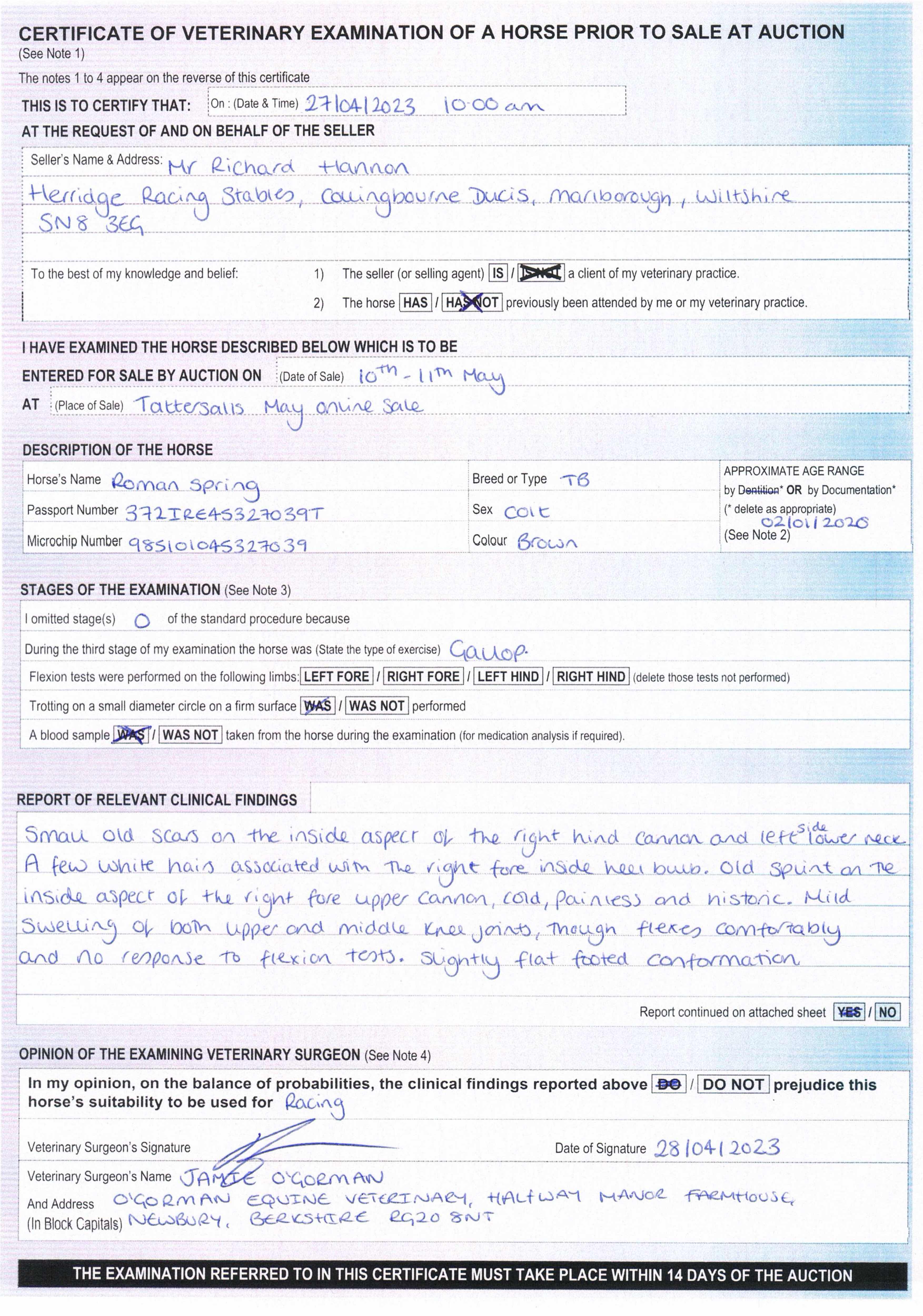 For time sensitive requests please call Tattersalls on +44(0)1638665931