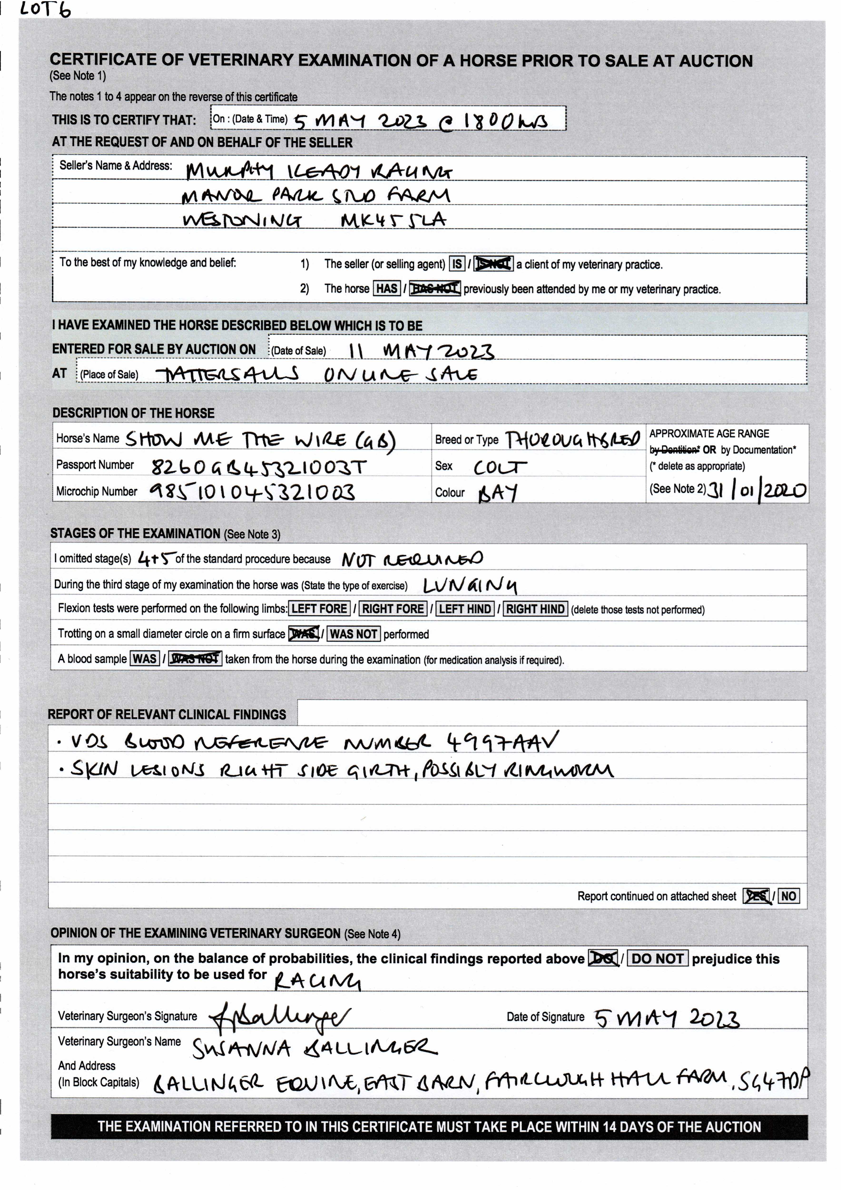 For time sensitive requests please call Tattersalls on +44(0)1638665931