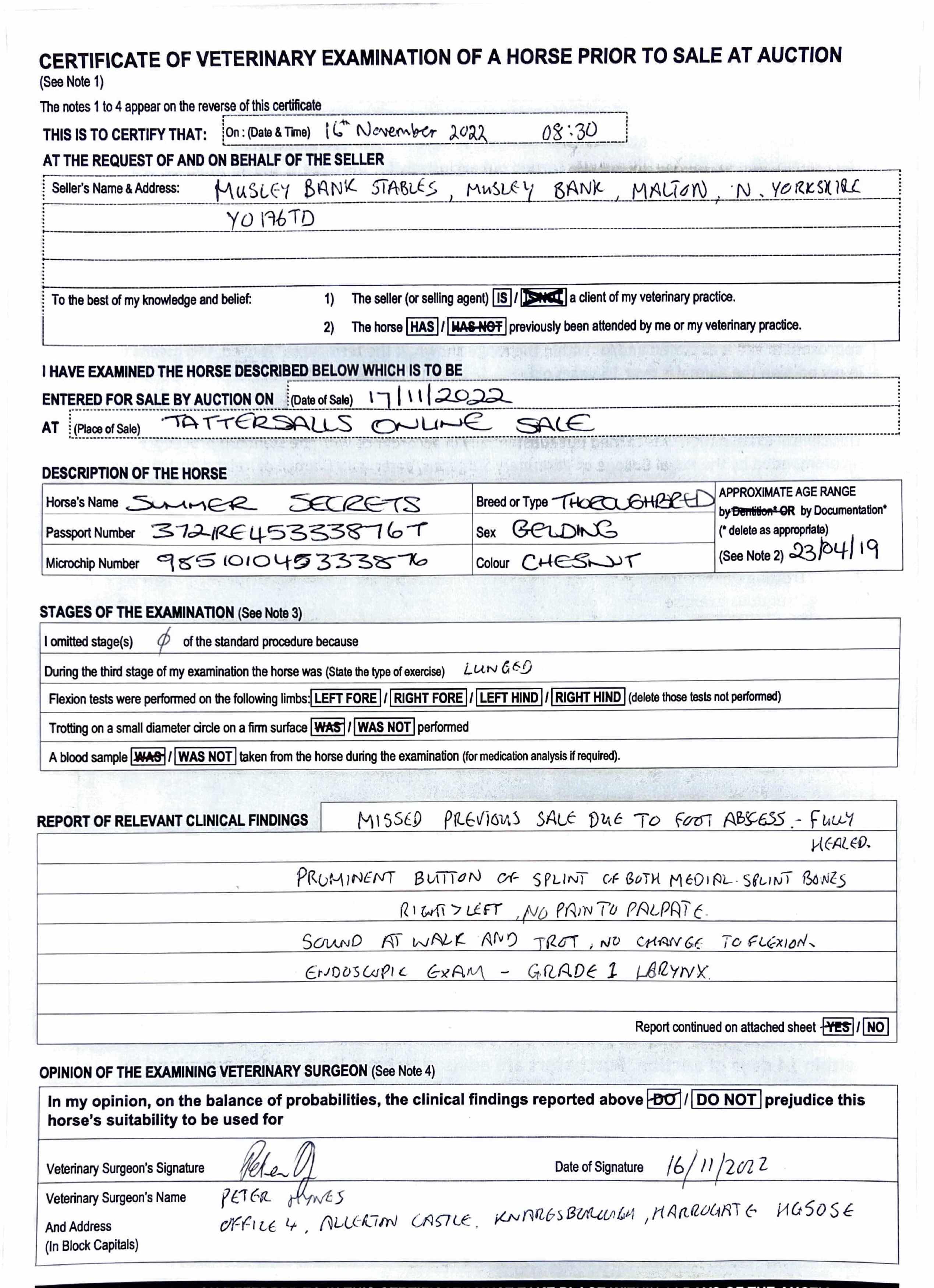 For time sensitive requests please call Tattersalls on +44(0)1638665931