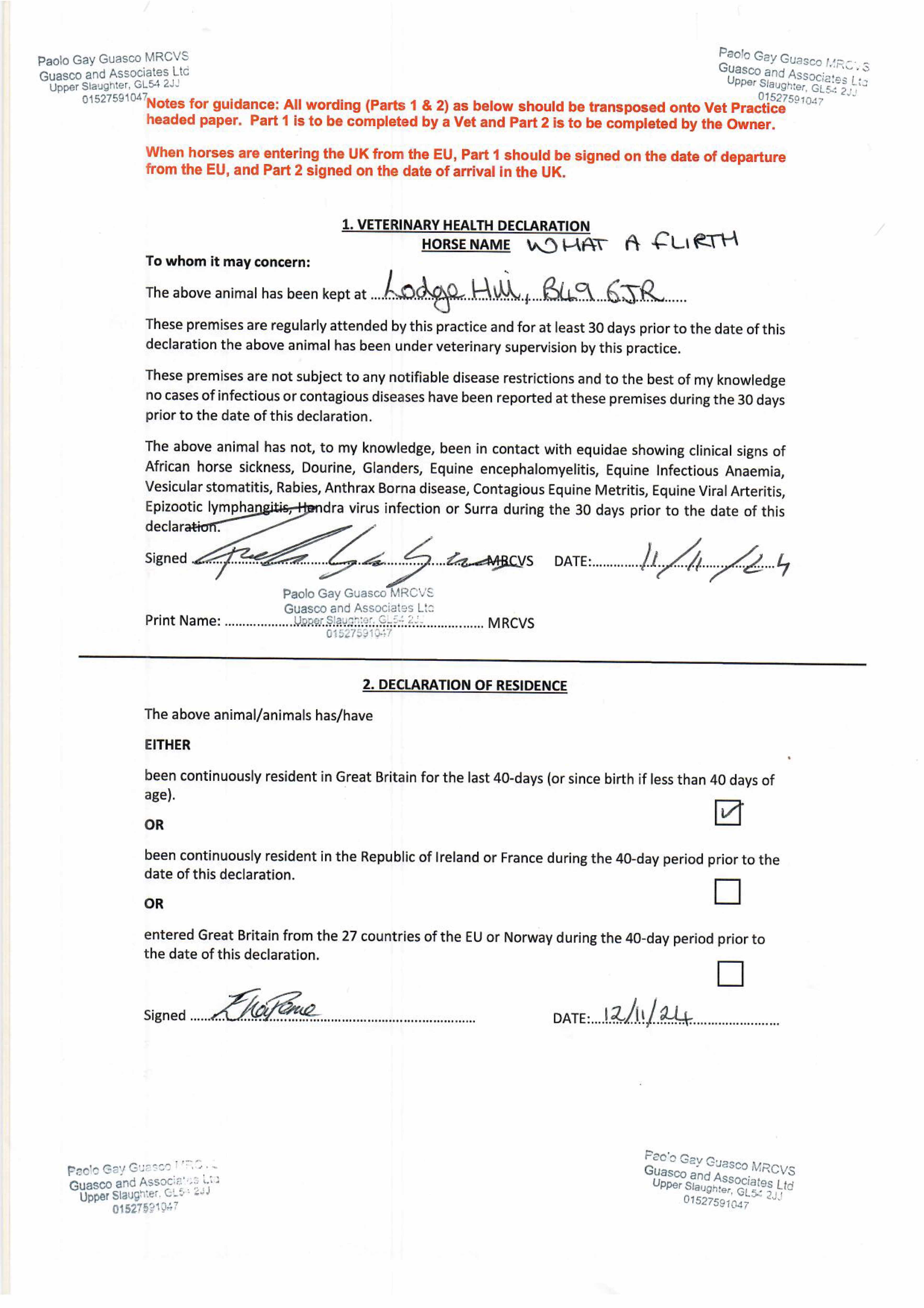 Vices/Declarations: Has been seen to Wind-Suck.
