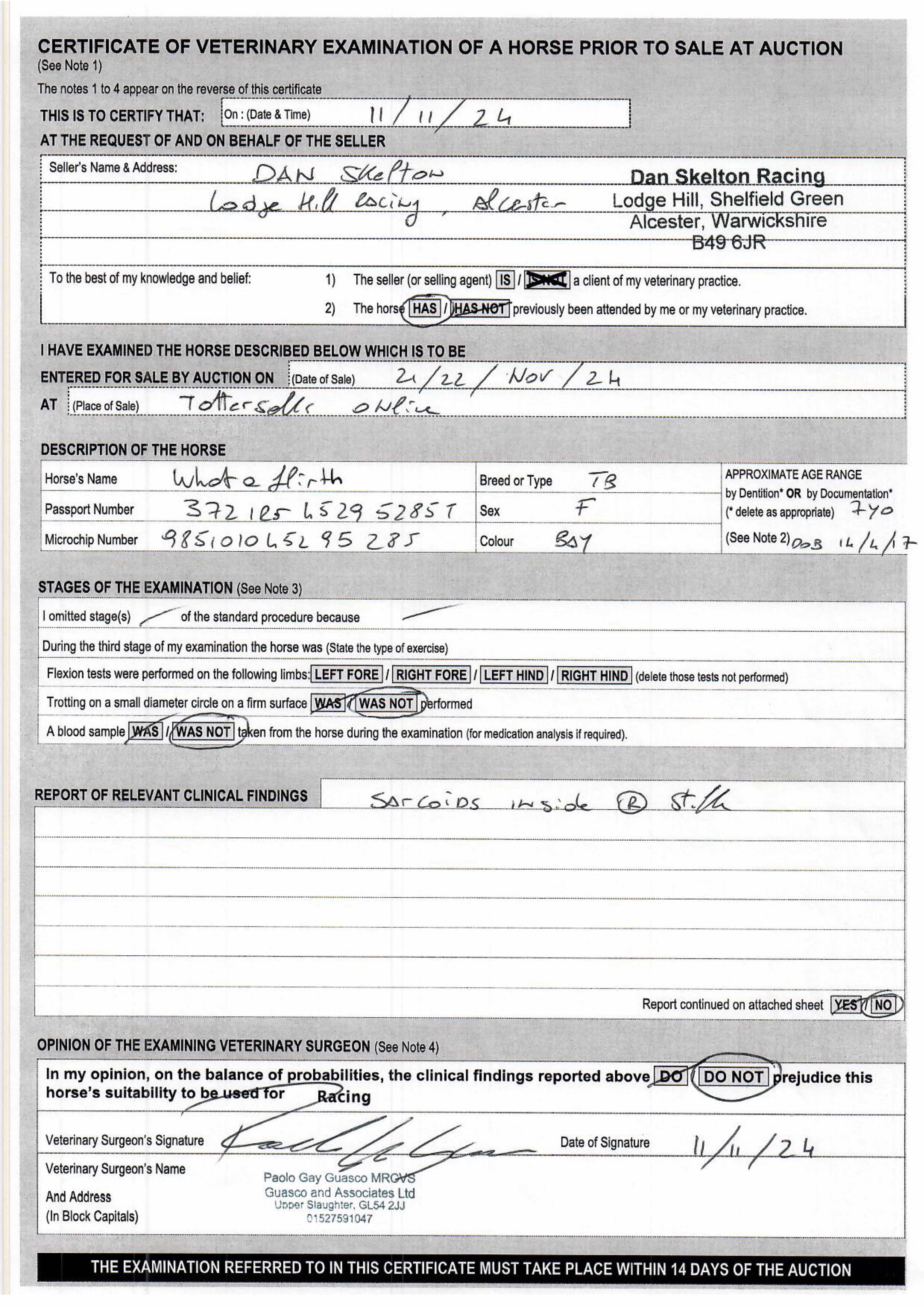 For time sensitive requests please call Tattersalls on +44(0)1638665931