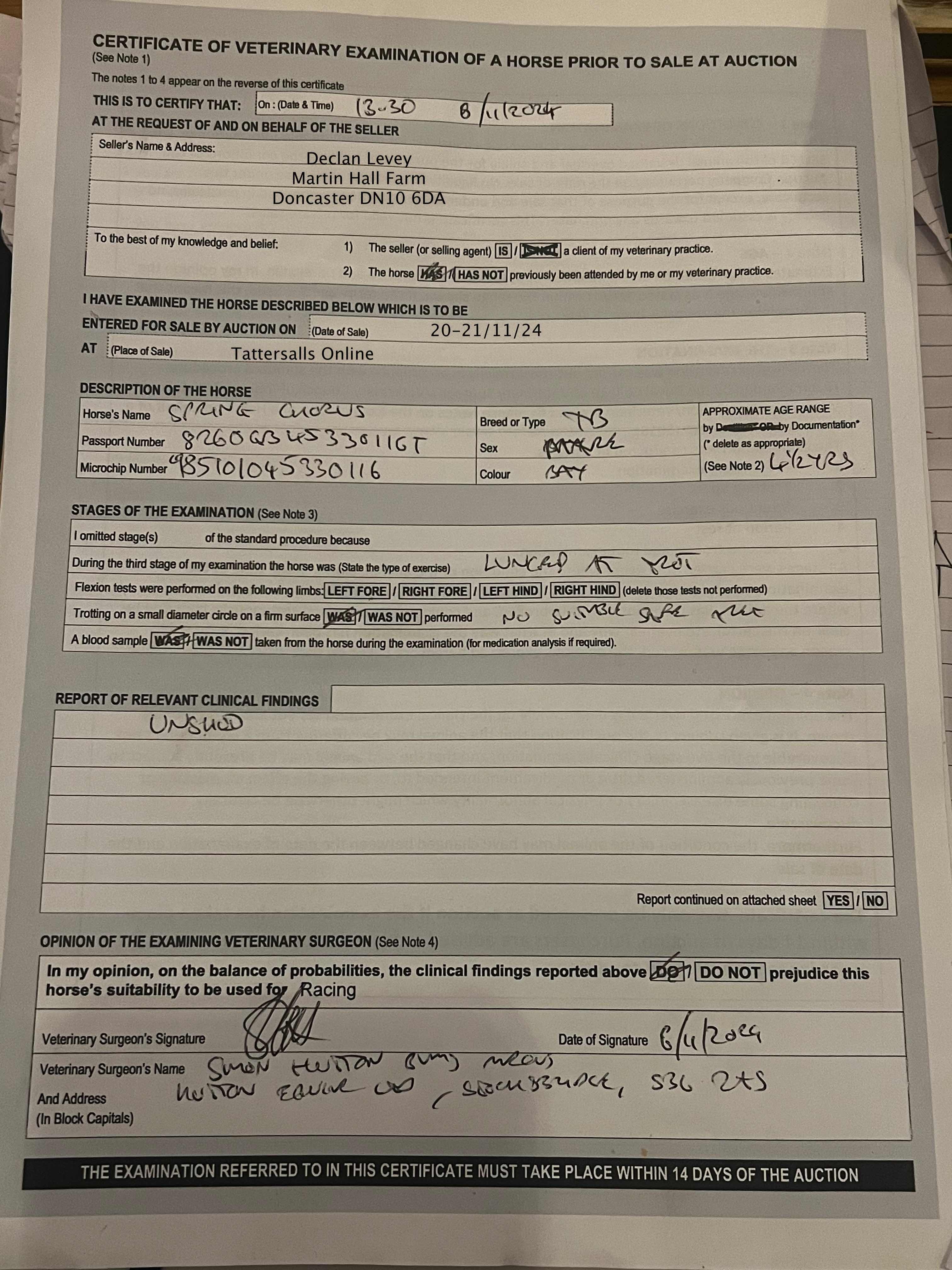 For time sensitive requests please call Tattersalls on +44(0)1638665931
