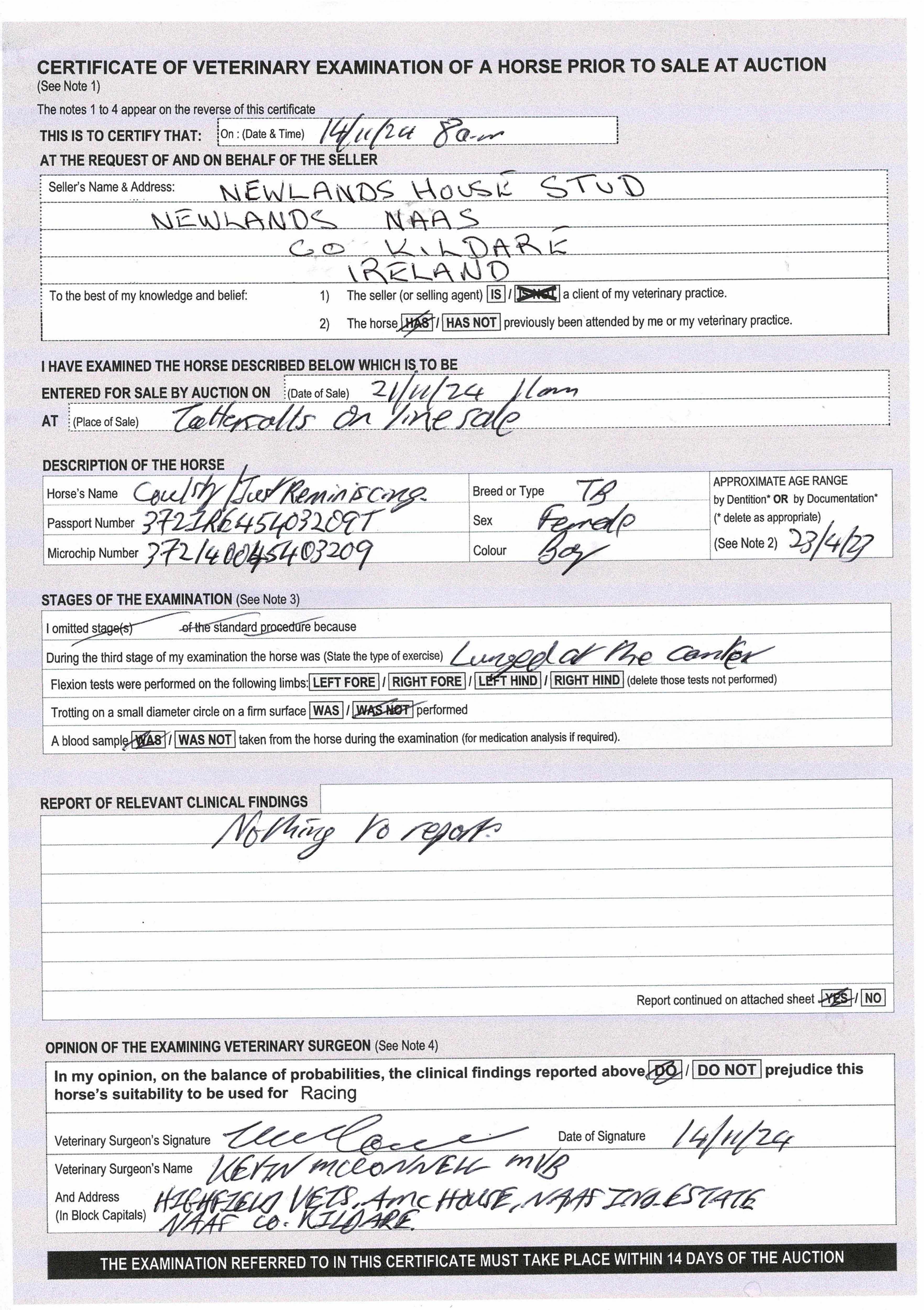 Consignor: Newlands House Stud, Ireland