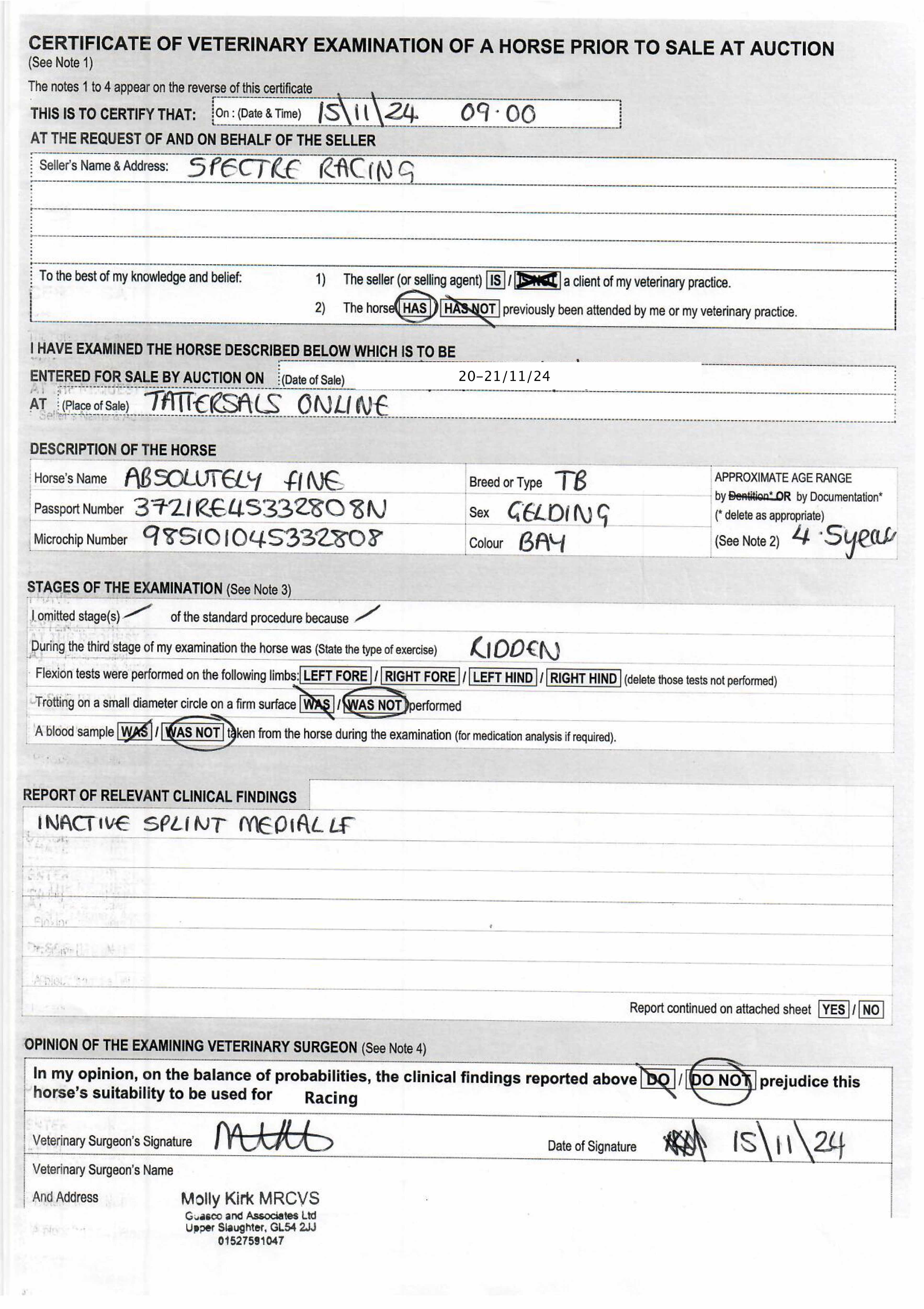 For time sensitive requests please call Tattersalls on +44(0)1638665931