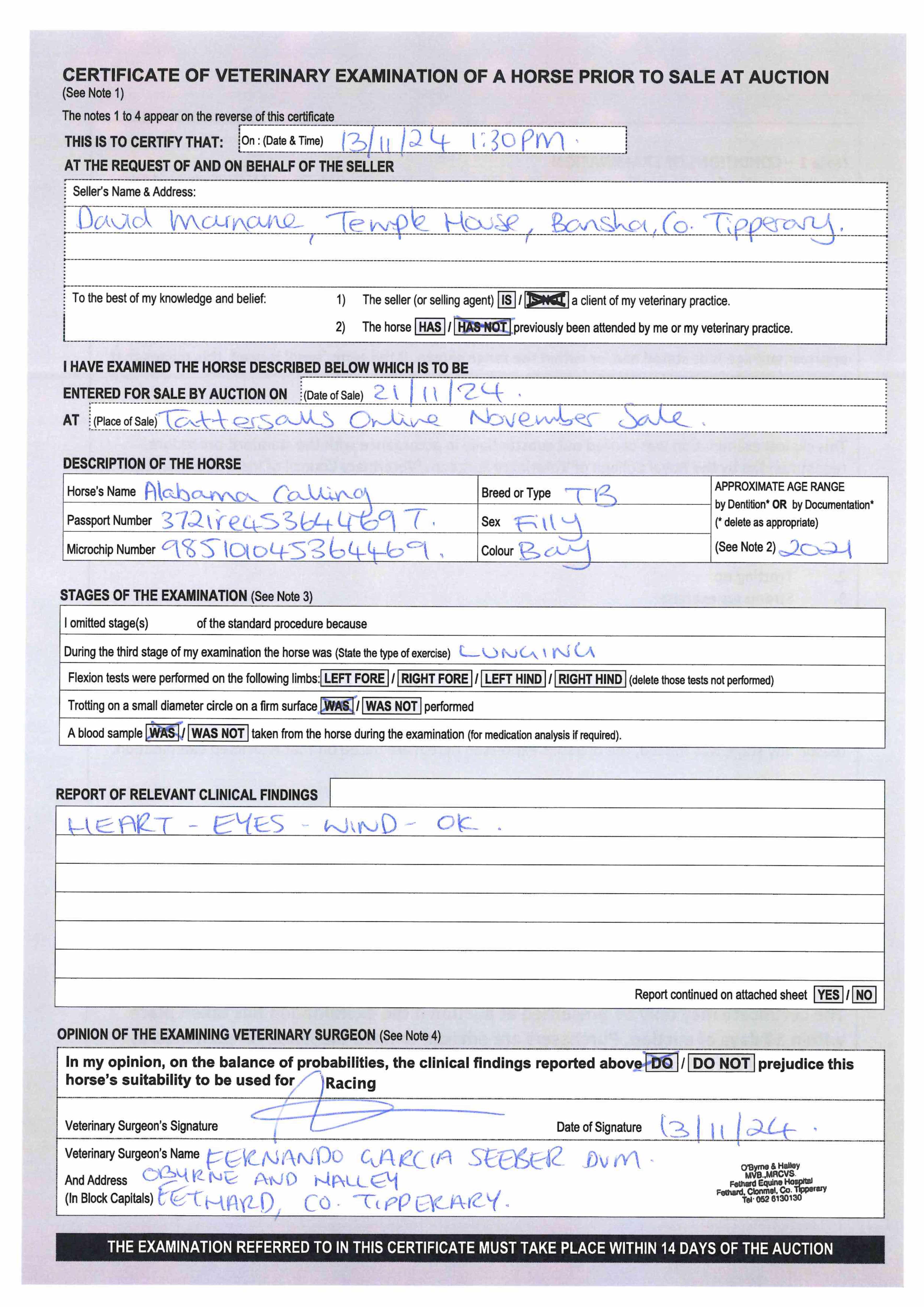 Consignor: David Marnane Racing, Ireland