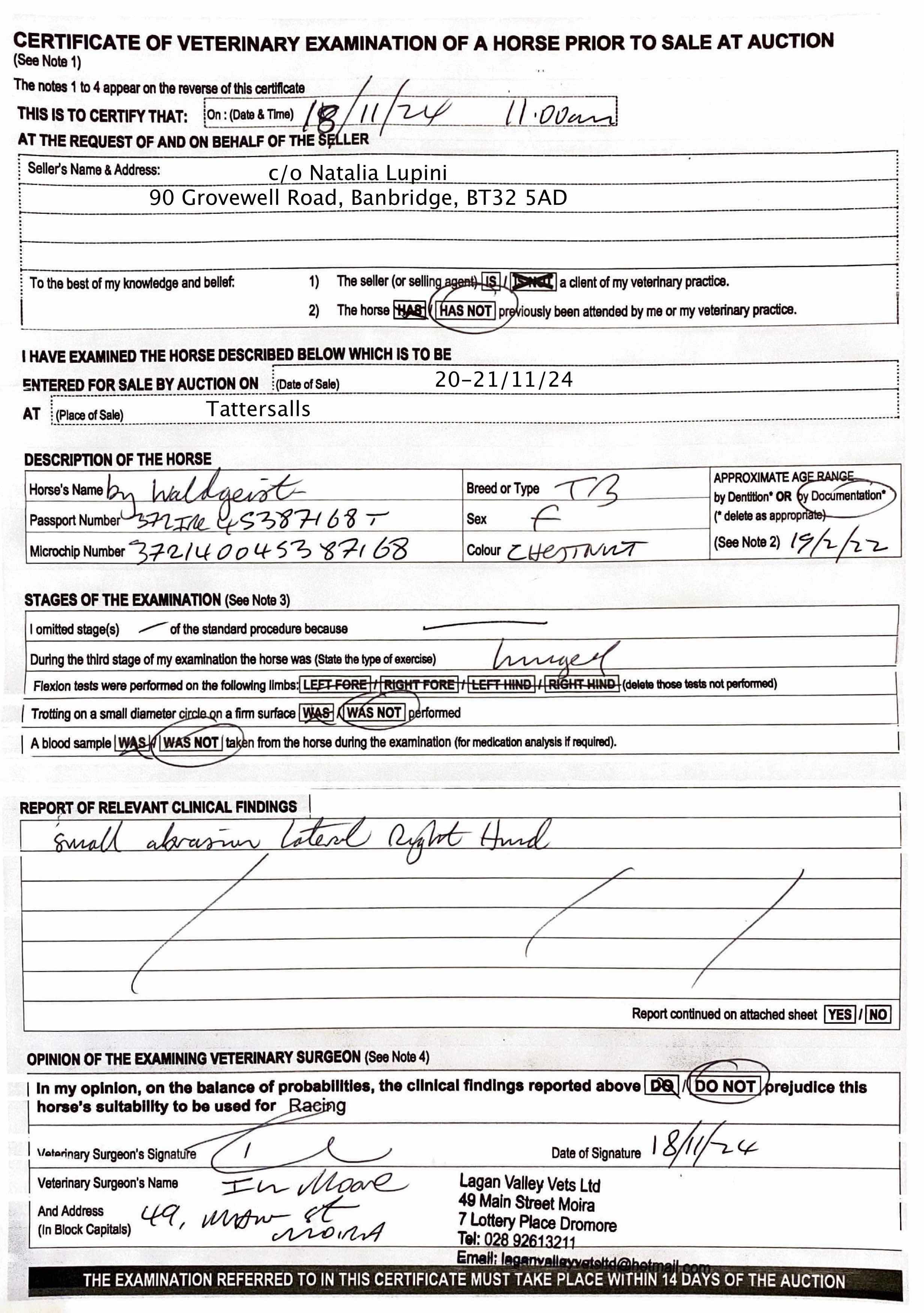 Vet Certificate