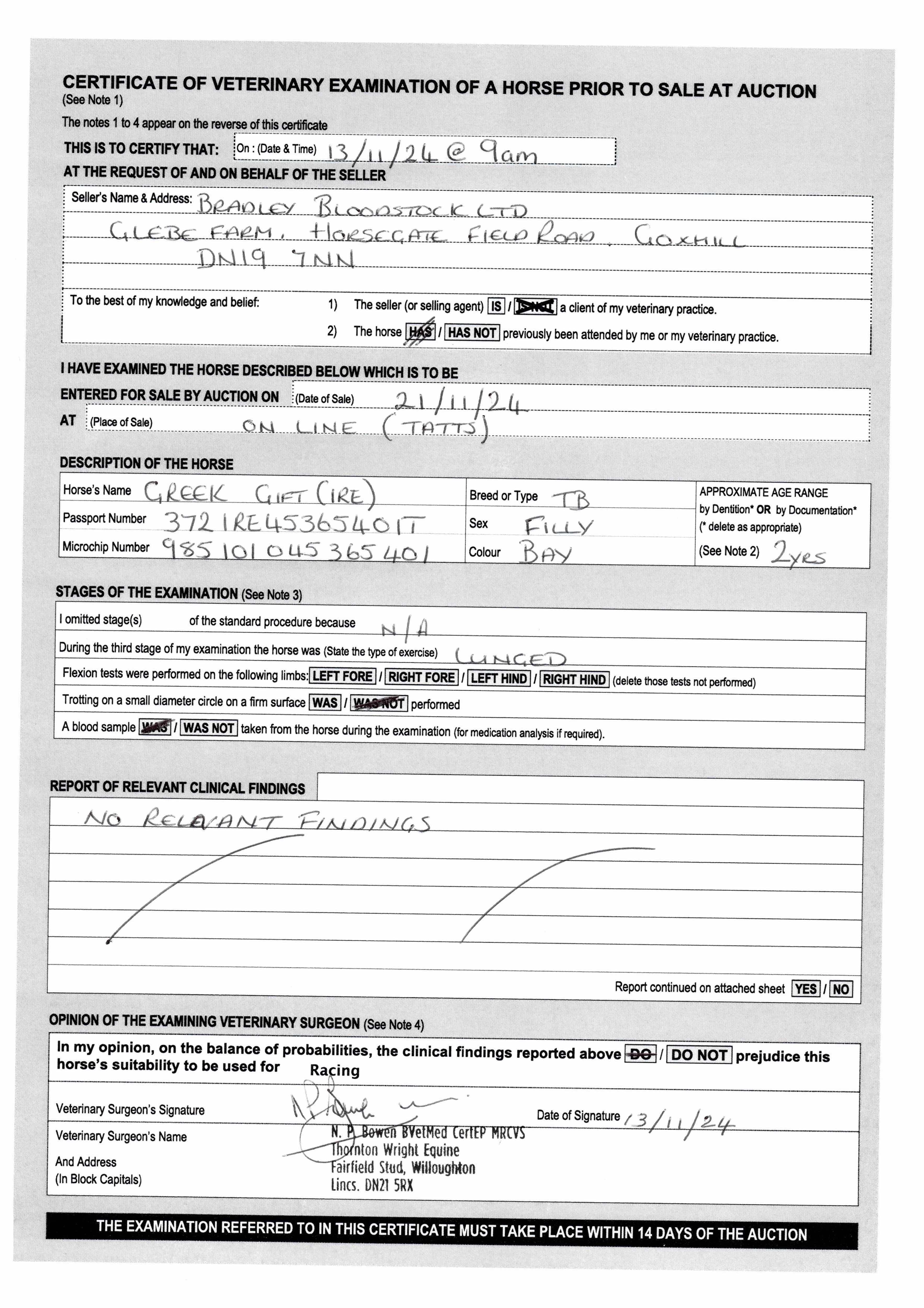 For time sensitive requests please call Tattersalls on +44(0)1638665931