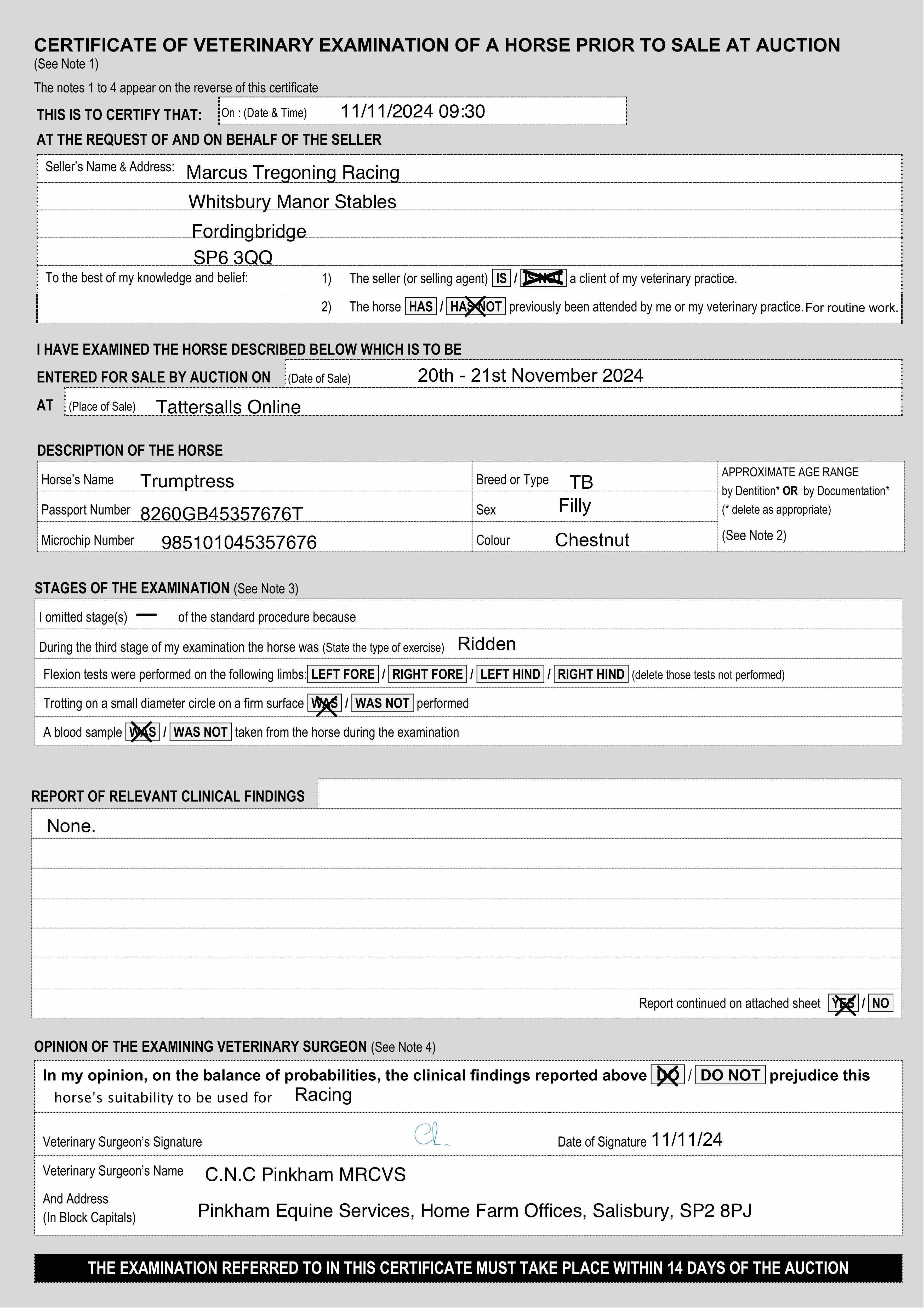 For time sensitive requests please call Tattersalls on +44(0)1638665931