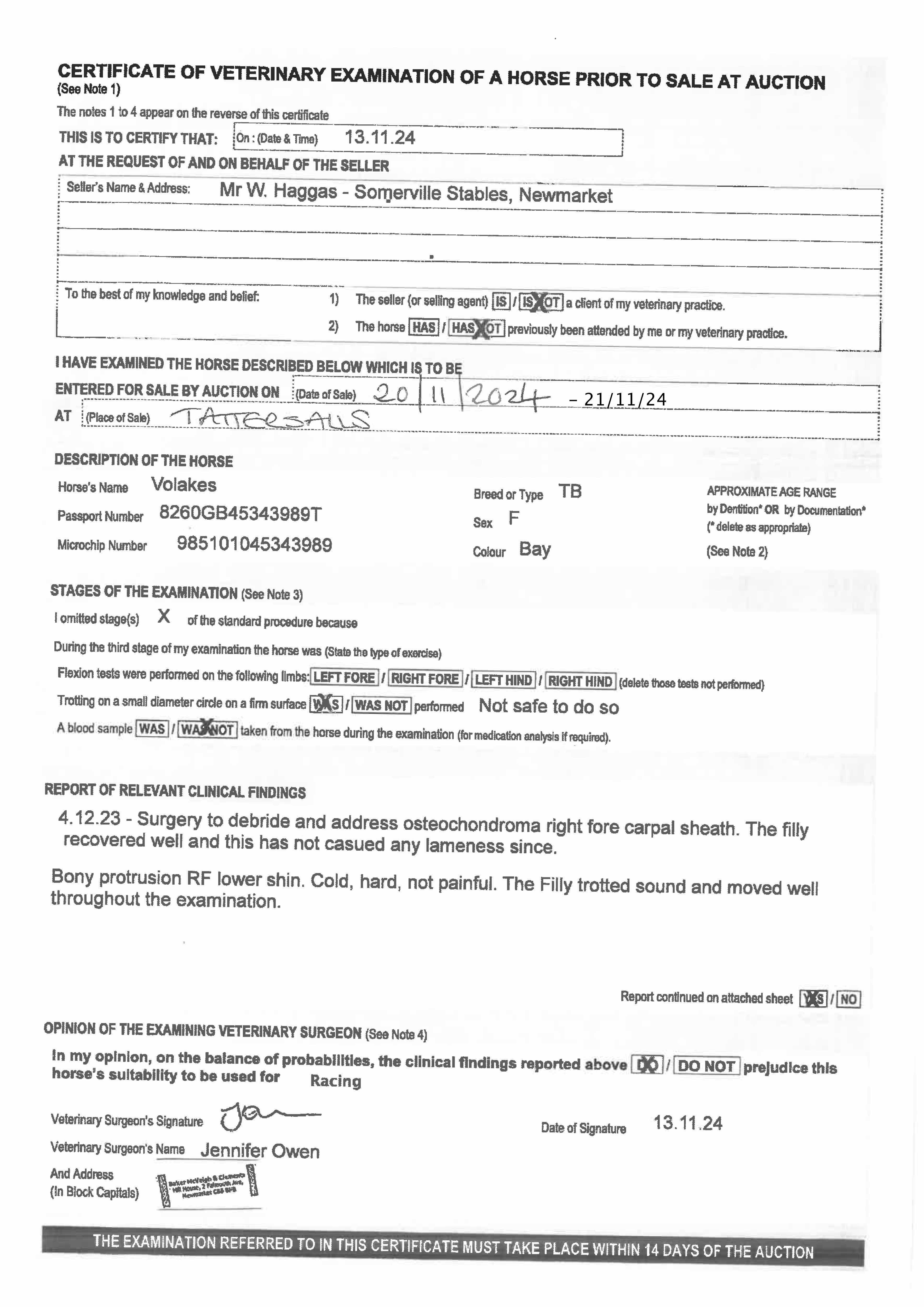 For time sensitive requests please call Tattersalls on +44(0)1638665931