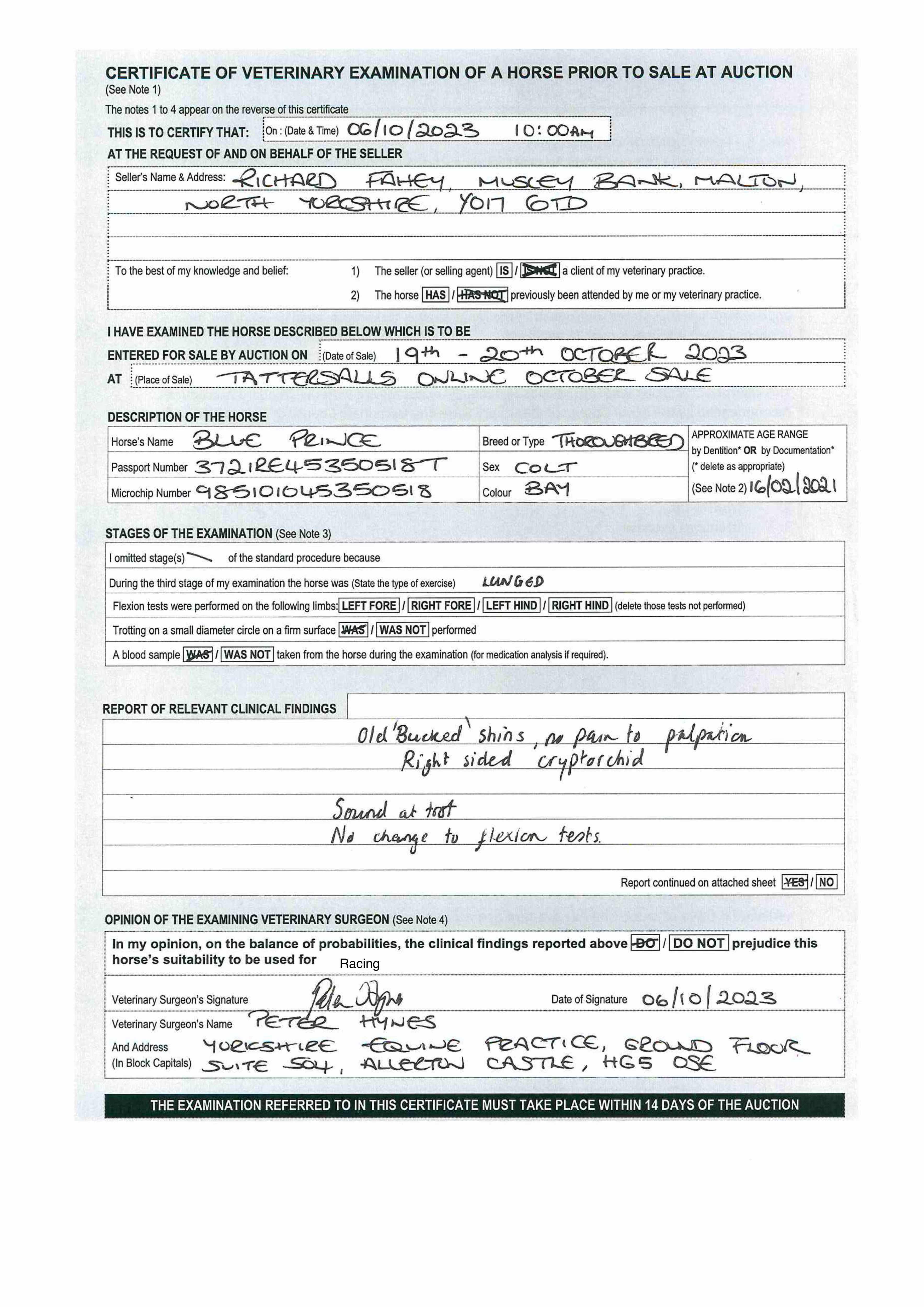 For time sensitive requests please call Tattersalls on +44(0)1638665931