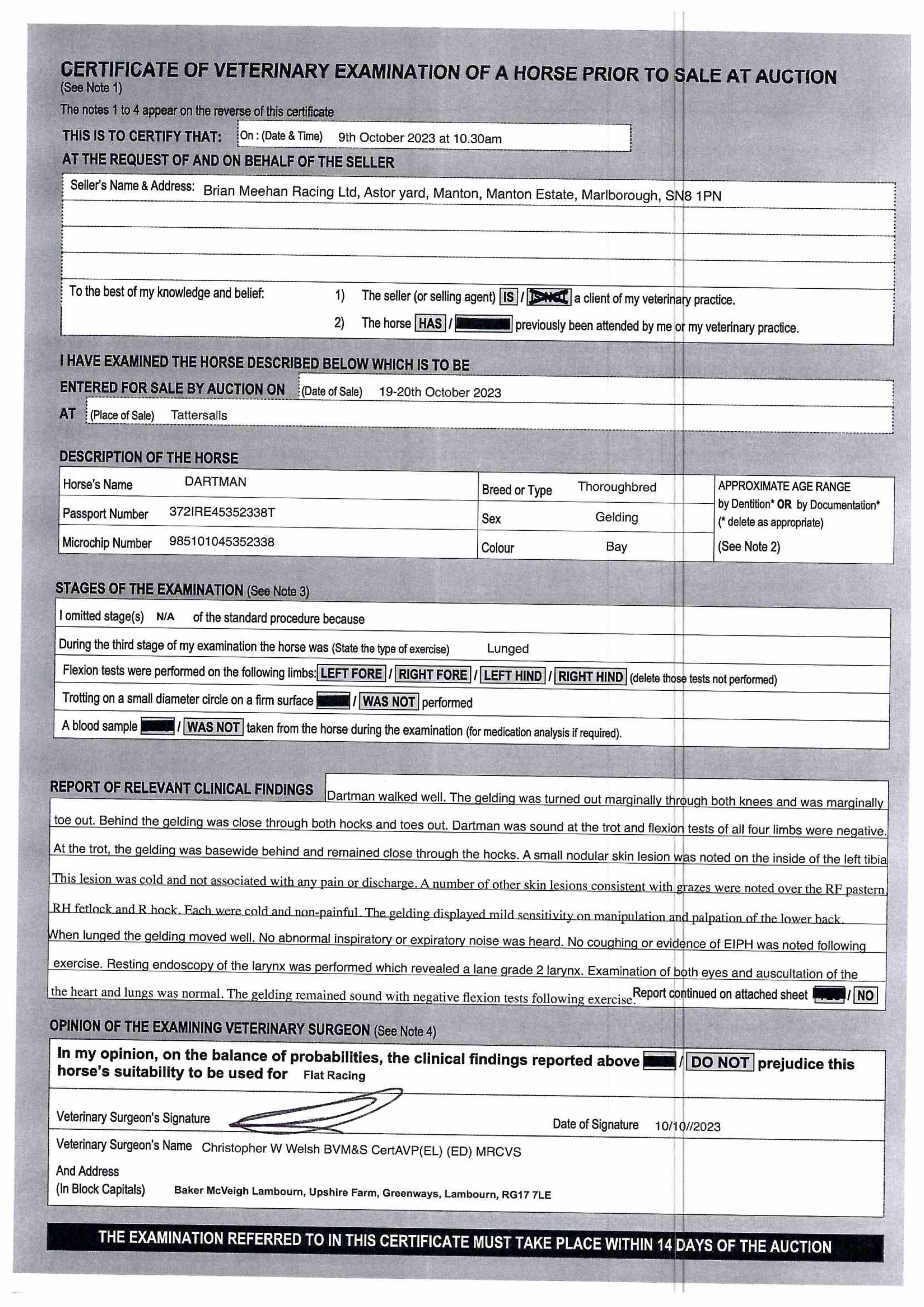 Consignor: Manton Lodge Stables (B. Meehan)