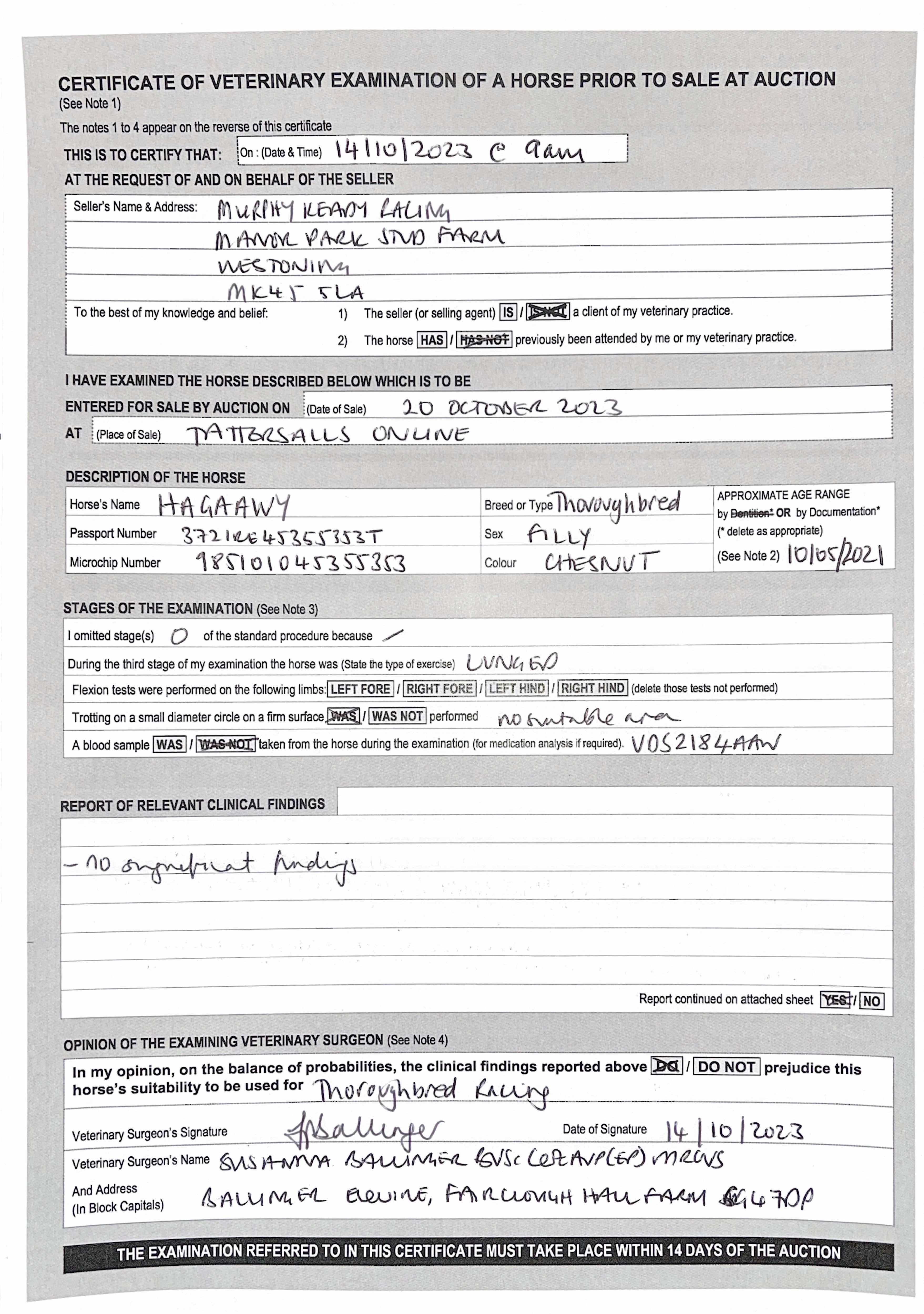 For time sensitive requests please call Tattersalls on +44(0)1638665931