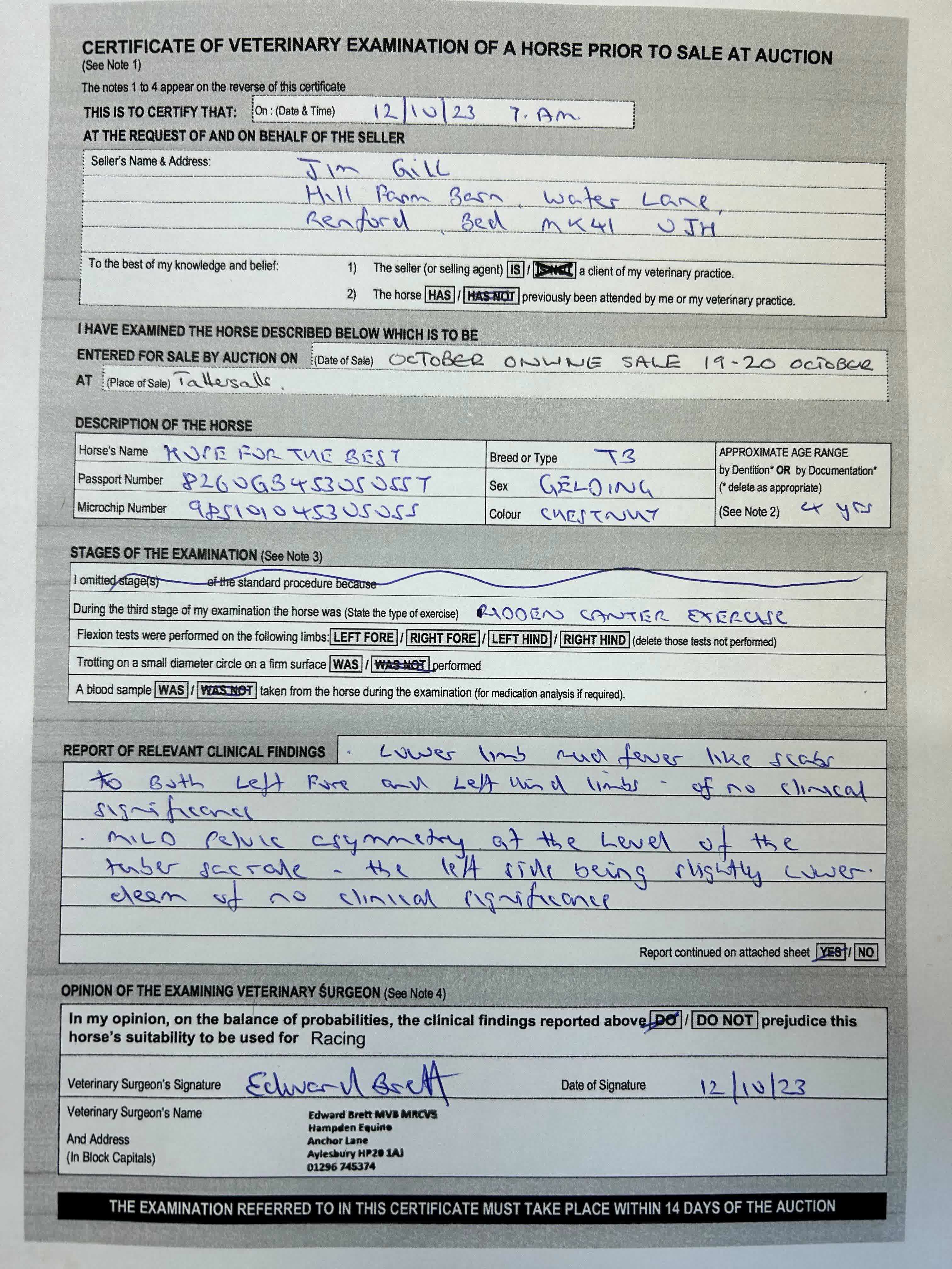 Tuesday 17 October:  Has run since publication of catalogue. 08/10/23 - 5th of 14 in 2m (Class 5) Handicap Hurdle, Uttoxeter.