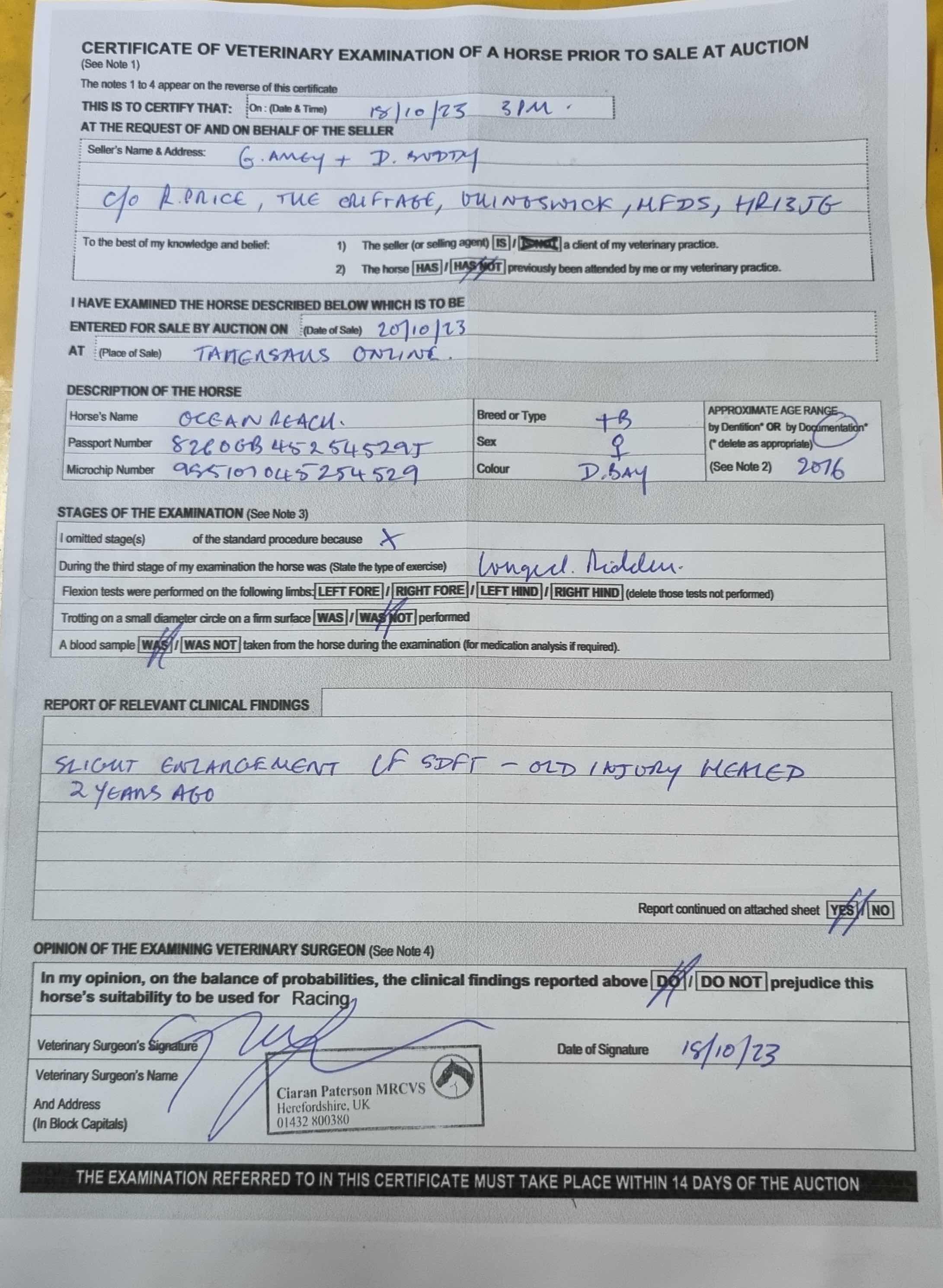 For time sensitive requests please call Tattersalls on +44(0)1638665931