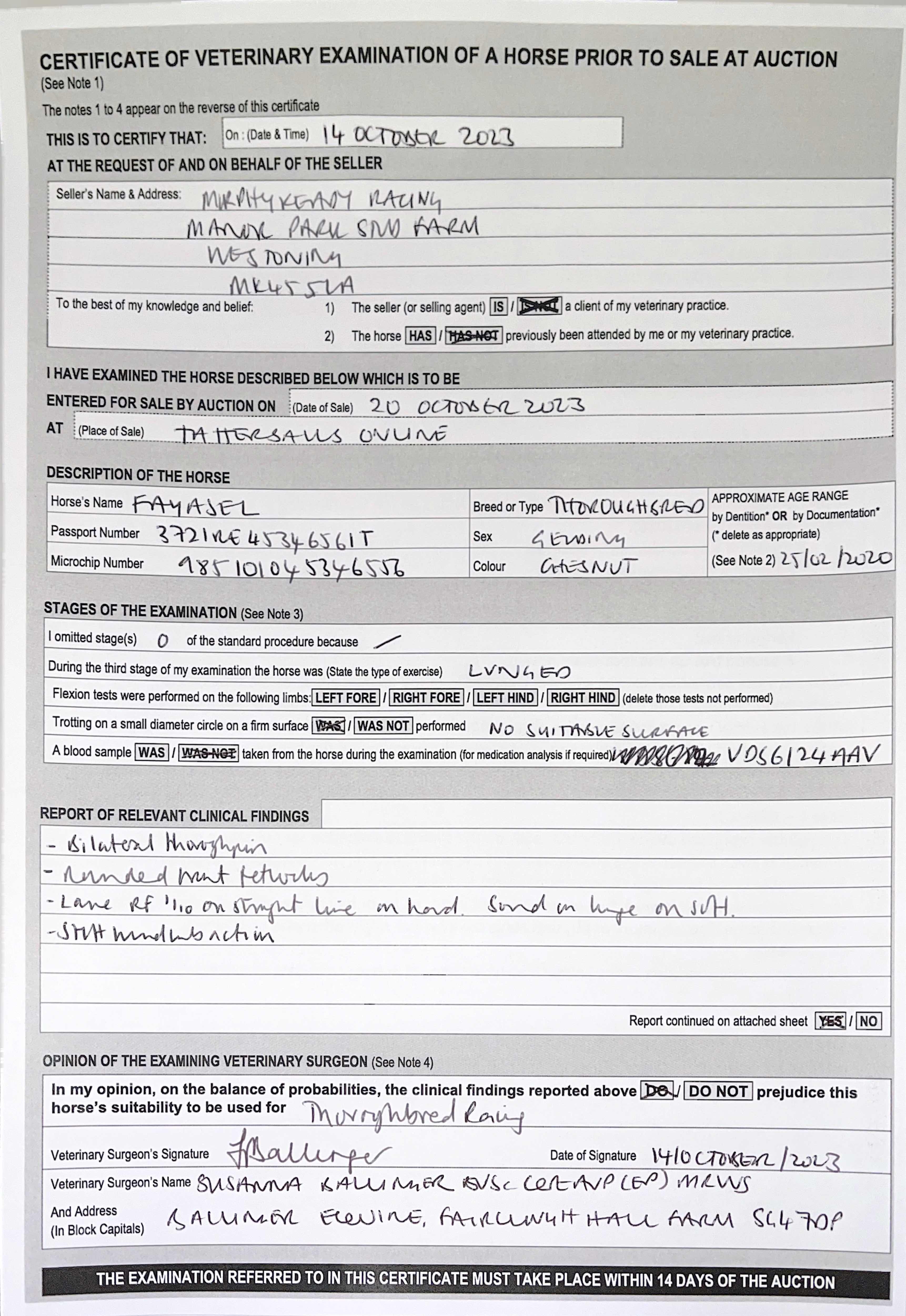 Friday 13 October:  Sold as a HORSE IN TRAINING