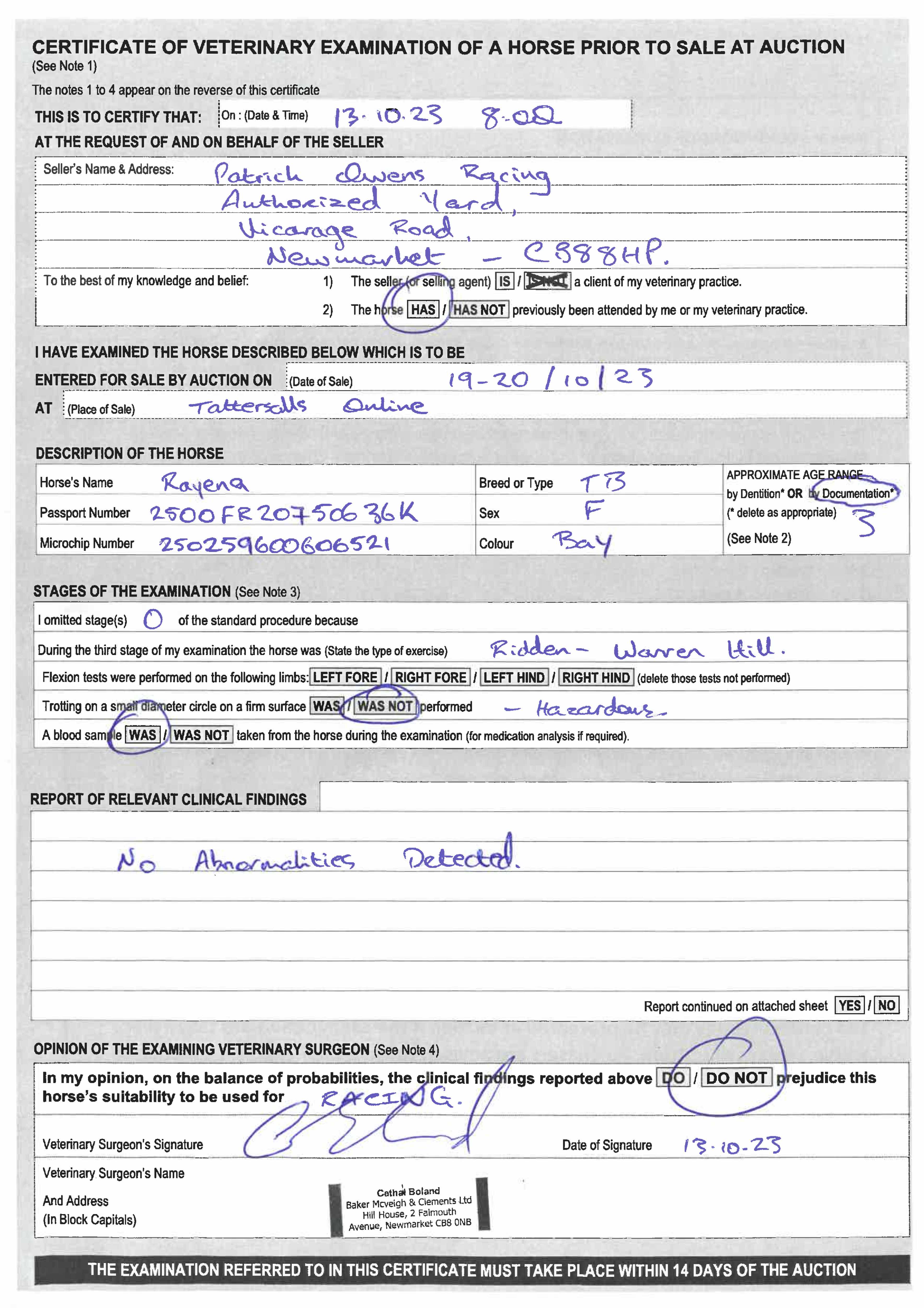For time sensitive requests please call Tattersalls on +44(0)1638665931