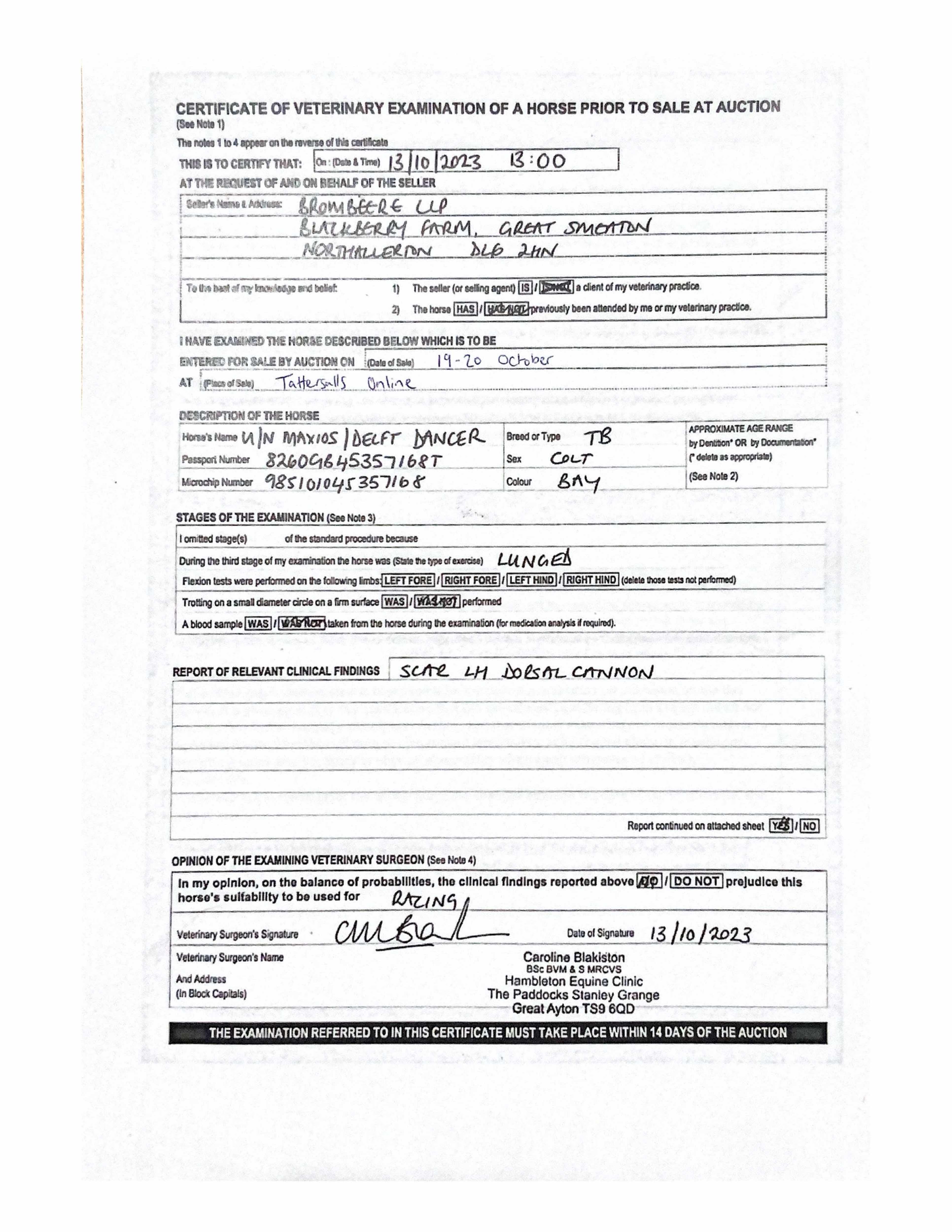 Vendor's Notes: Homebred, straight forward colt, no vices, driven in long reins.