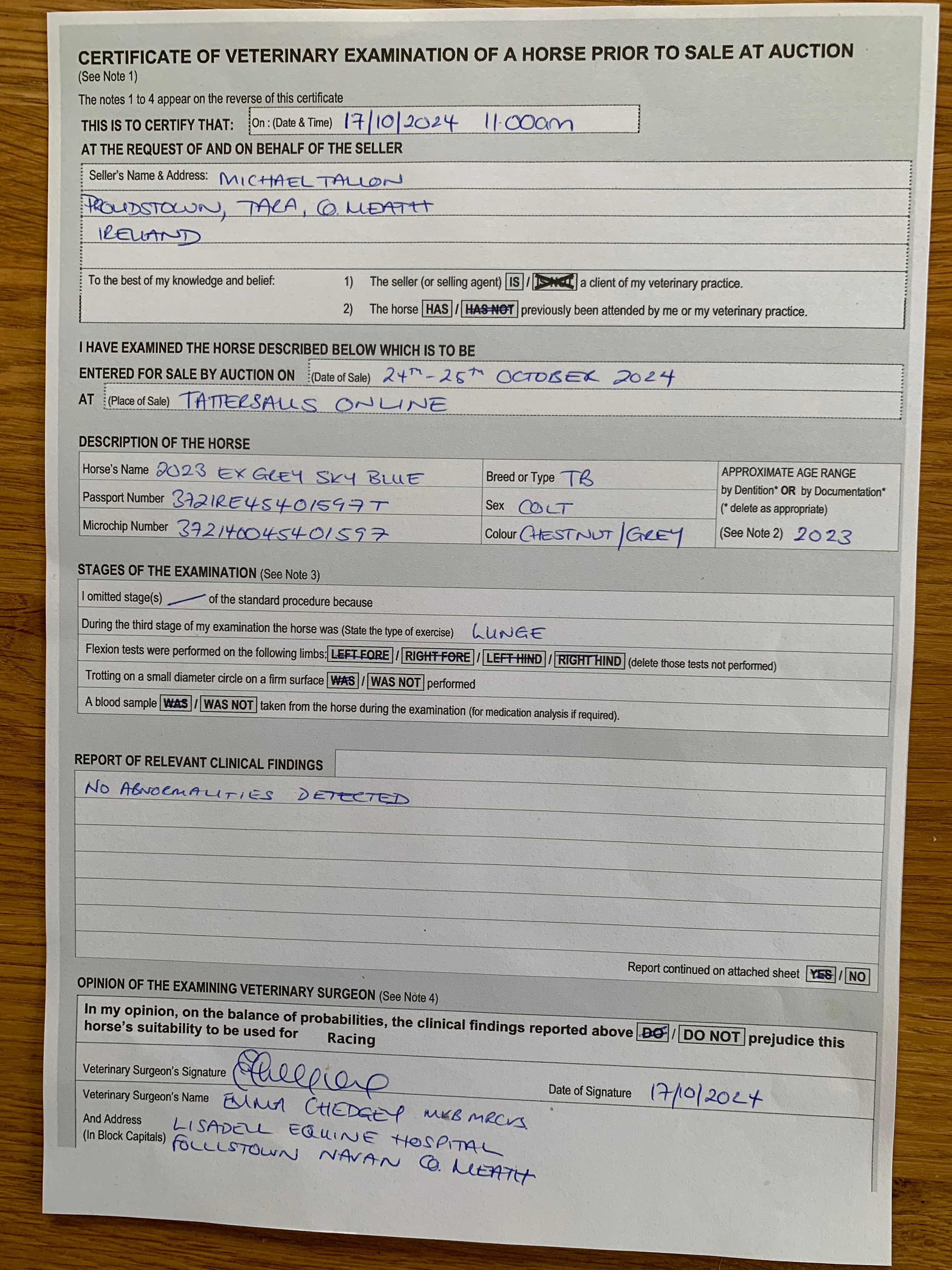 For time sensitive requests please call Tattersalls on +44(0)1638665931
